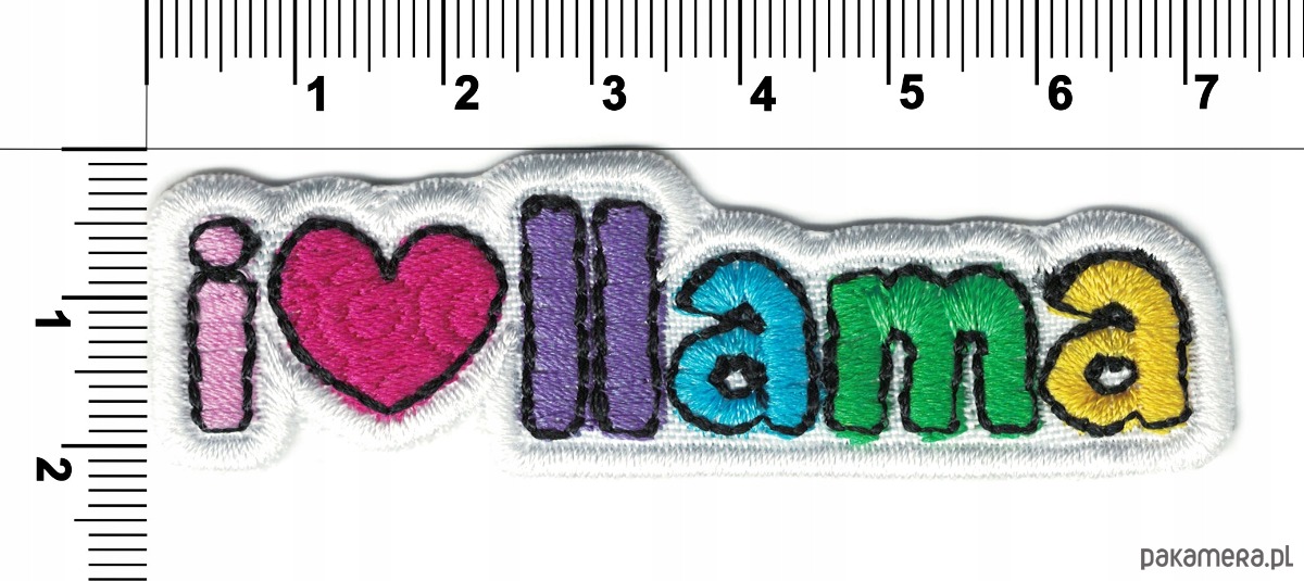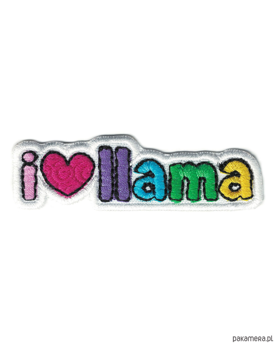 Naszywka naprasowanka I LOVE LAMA termoprzylepna haft 7,3x2,3cm