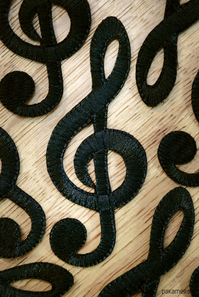 Naszywka termoprzylepna Klucz Wiolinowy – czarna aplikacja haftowana