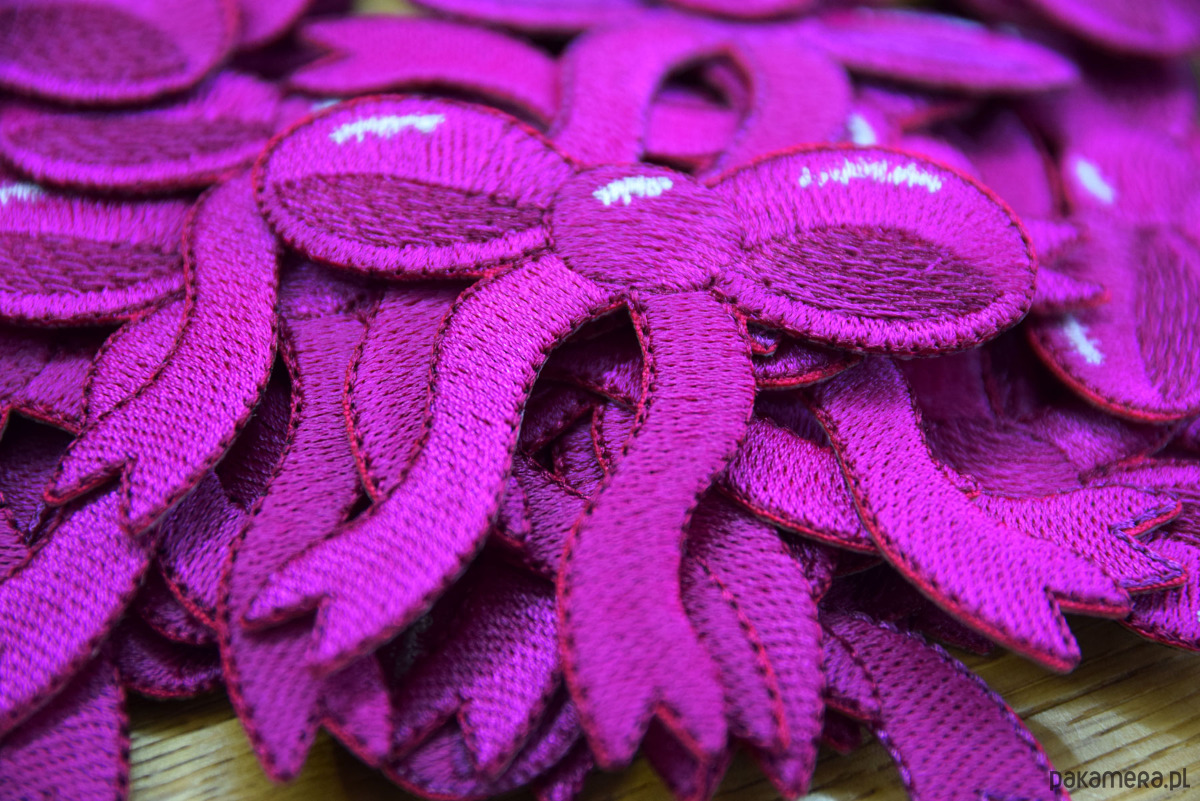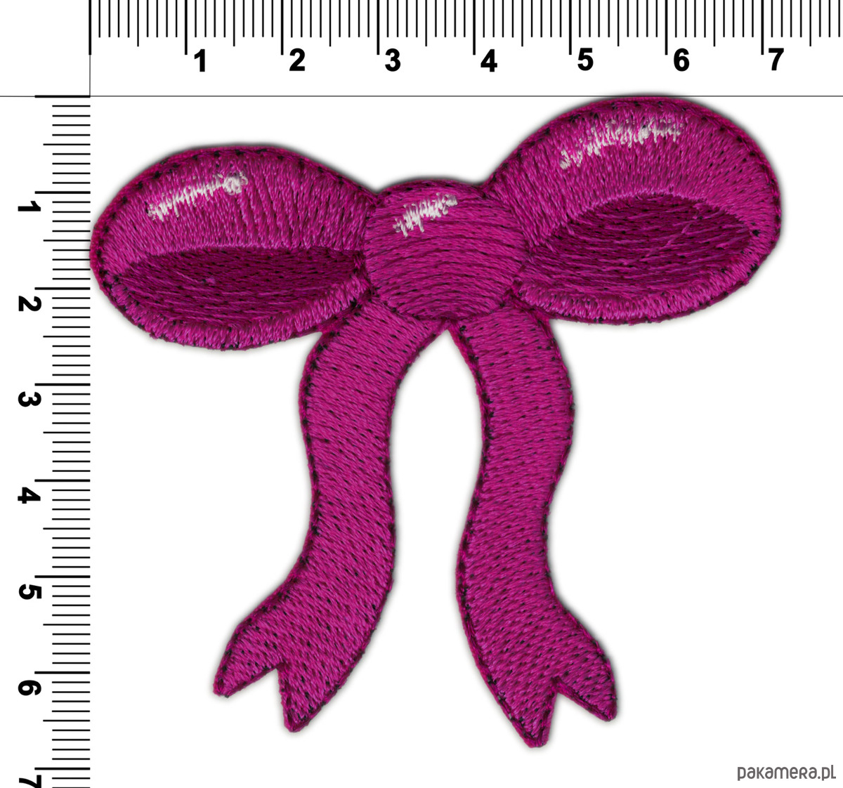 Elegancka naszywka termoprzylepna w kształcie kokardki to stylowy detal, który przyciąga wzrok intensywnym fioletem i starannym haftem. Wyrazista barwa w połączeniu z delikatnymi, połyskującymi przeszyciami nadaje całości dekoracyjny, a jednocześnie subtelny charakter. Precyzyjne wykończenie oraz miękka, tekstylna struktura sprawiają, że naszywka prezentuje się estetycznie zarówno z bliska, jak i z większej odległości.