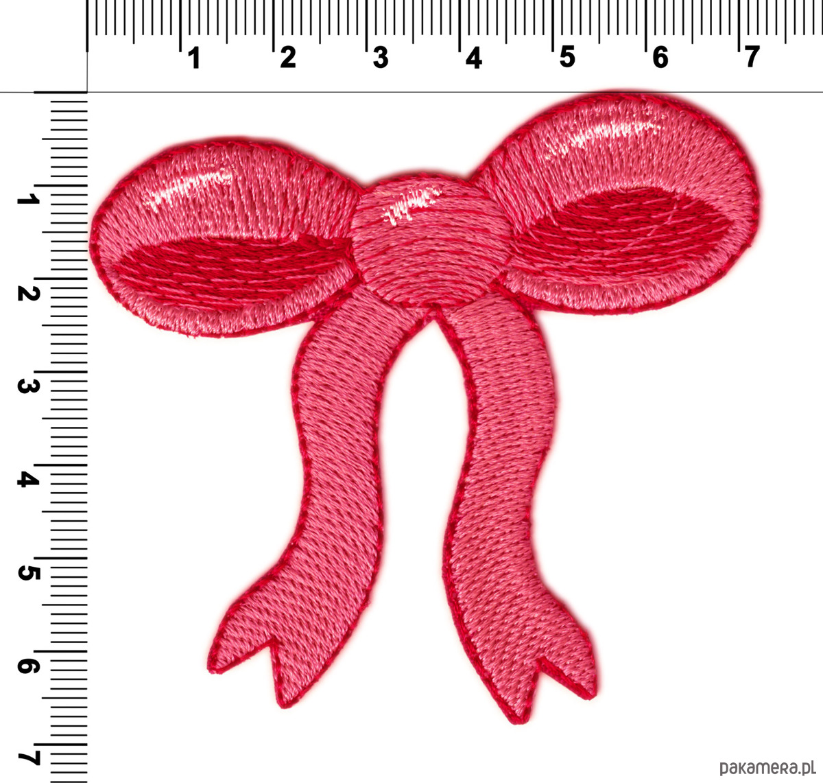 Naszywka termoprzylepna – haftowana kokardka w odcieniu koraluDekoracyjna naszywka w kształcie kokardki zachwyca dopracowanym haftem i harmonijnym połączeniem odcieni koralu. Delikatny połysk nici nadaje jej elegancki wygląd, a wyraźnie zaznaczona forma sprawia, że motyw jest czytelny i estetyczny. Starannie wykonane detale oraz gładka struktura haftu podkreślają wysoką jakość produktu i sprawiają, że naszywka prezentuje się bardzo efektownie na różnych materiałach.Subtelna kolorystyka doskonale wpisuje się w romantyczne, dziewczęce oraz klasyczne stylizacje. Kokardka może stanowić ozdobny akcent na ubraniach codziennych i wizytowych, takich jak bluzy, swetry, sukienki czy koszule. Świetnie sprawdzi się również jako element dekoracyjny na dodatkach – torbach, plecakach, etui, piórnikach czy tekstyliach dziecięcych.Naszywka daje szerokie możliwości personalizacji i tworzenia unikalnych projektów. Może być używana zarówno jako subtelna ozdoba, jak i wyrazisty detal podkreślający charakter stylizacji. To idealny wybór dla osób, które cenią estetyczne dodatki, rękodzielnicze projekty oraz oryginalne wykończenia tekstyliów.Wymiary naszywki: 7,2 x 6,8cmProducent: WyszywaneTermofolia: takNaszywki mają wszechstronne zastosowanie. Dawniej służyły przede wszystkim do łatania dziur w odzieży czy przykrywania nieestetycznych mankamentów, np. plam, dzisiaj coraz częściej postrzegane są jako element dekoracyjny i kreatywny sposób, by spersonalizować ubrania czy akcesoria, zarówno dla dorosłych, jak i dla dzieci. Do ich rosnącej popularności przyczynia się to, że są łatwe w użyciu oraz różnorodność dostępnych wzorów.Nasze aplikacje są wykonane metodą haftu komputerowego na tkaninie poliestrowej. Podklejone są folią termoprzylepną, dzięki czemu wystarczy je przyprasować do tkaniny. Również nic nie stoi na przeszkodzie aby przymocować naszywkę igłą i nitką.Do produkcji stosujemy materiały najwyższej jakości.INSTRUKCJA PRZYPRASOWANIA NASZYWEKNaszywki można przyprasować do tkanin, które są w stanie znieść temperaturę prasowania bawełny. Jeśli Twoja tkanina jest zbyt delikatna, prasuj przez ochronną szmatkę bawełnianą, upewniając się, że nie zniszczysz tkaniny.Nastaw żelazko na bawełnę.