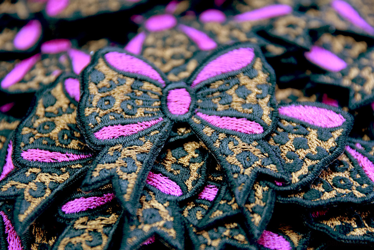 Modna naszywka haftowana w kształcie kokardy z motywem panterki i różowymi detalami to stylowy dodatek, który doda charakteru każdej stylizacji. Połączenie klasycznego wzoru leopard z intensywnym różem tworzy efektowną, kobiecą aplikację przyciągającą wzrok.To doskonały wybór do personalizacji ubrań i dodatków w stylu fashion, streetwear oraz casual.