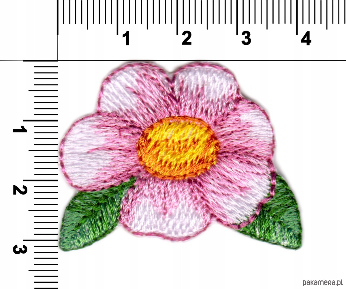 Naszywka naprasowanka KWIATEK RÓŻ termo haft dla dzieci 4,1x3,2cm różowa