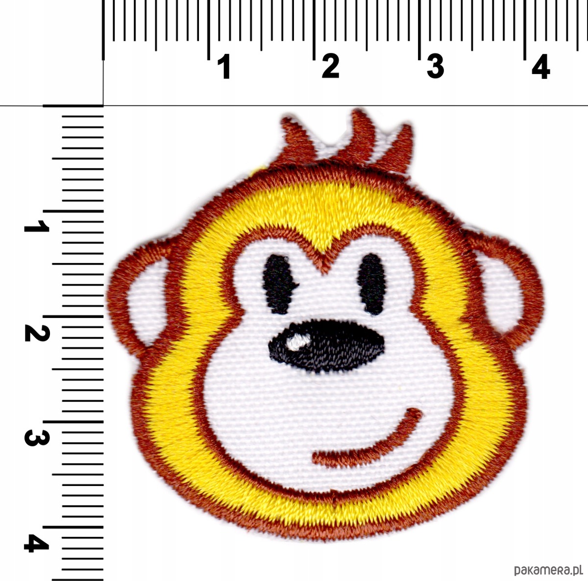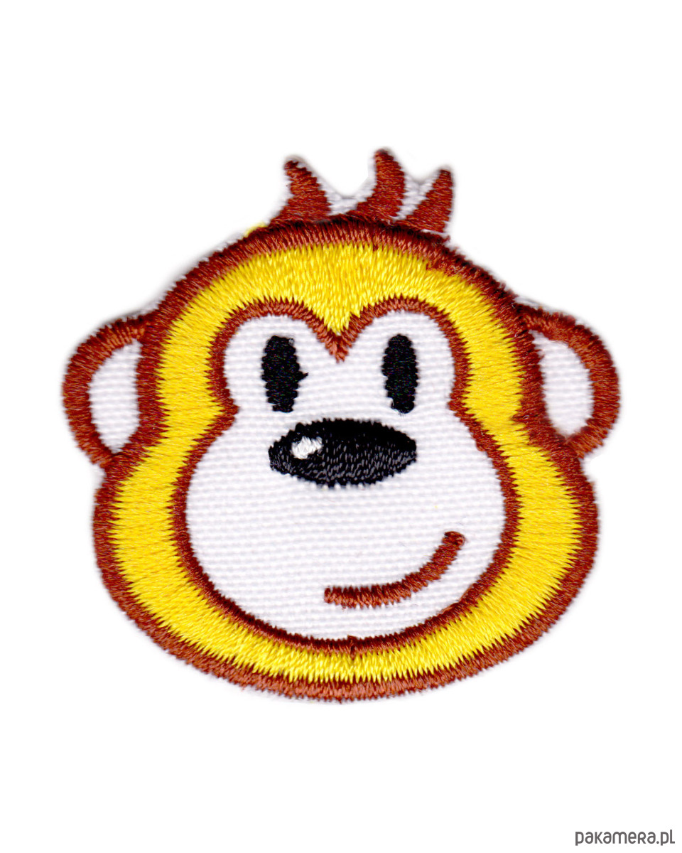 Haftowana naszywka z motywem uśmiechniętej małpki to kolorowa aplikacja termoprzylepna idealna do personalizacji plecaka szkolnego, bluzy, kurtki lub czapki dziecięcej. Wesoła buźka i wyraziste kolory sprawiają, że naszywka przyciąga uwagę i nadaje ubraniom radosnego charakteru.