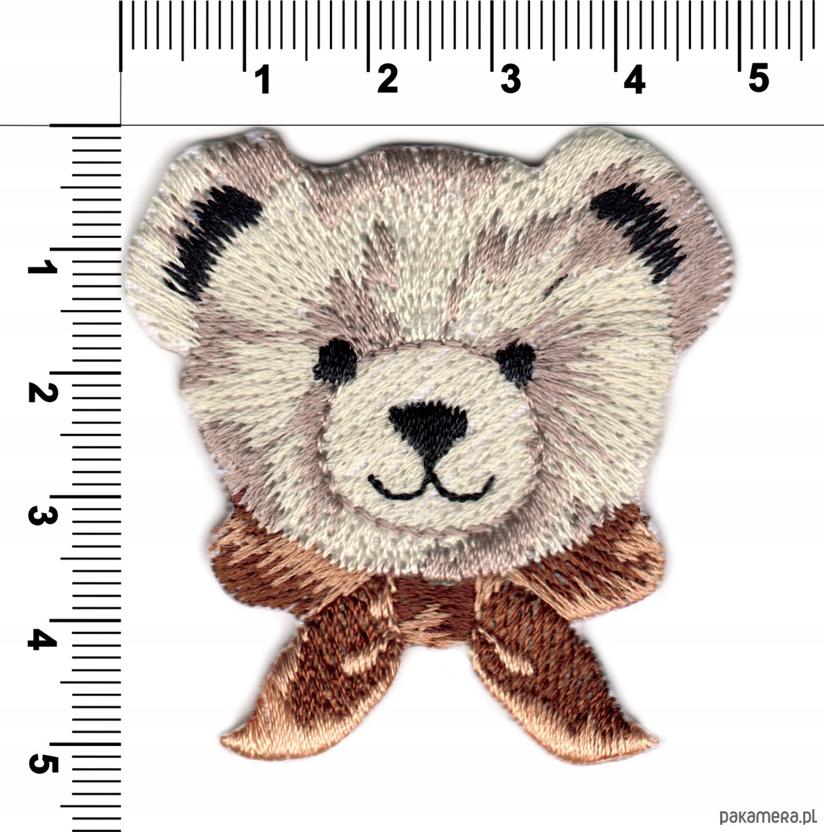 Naszywka naprasowanka MIŚ MISIU termoprzylepna haft 5x5,3cm brązowa kokarda::