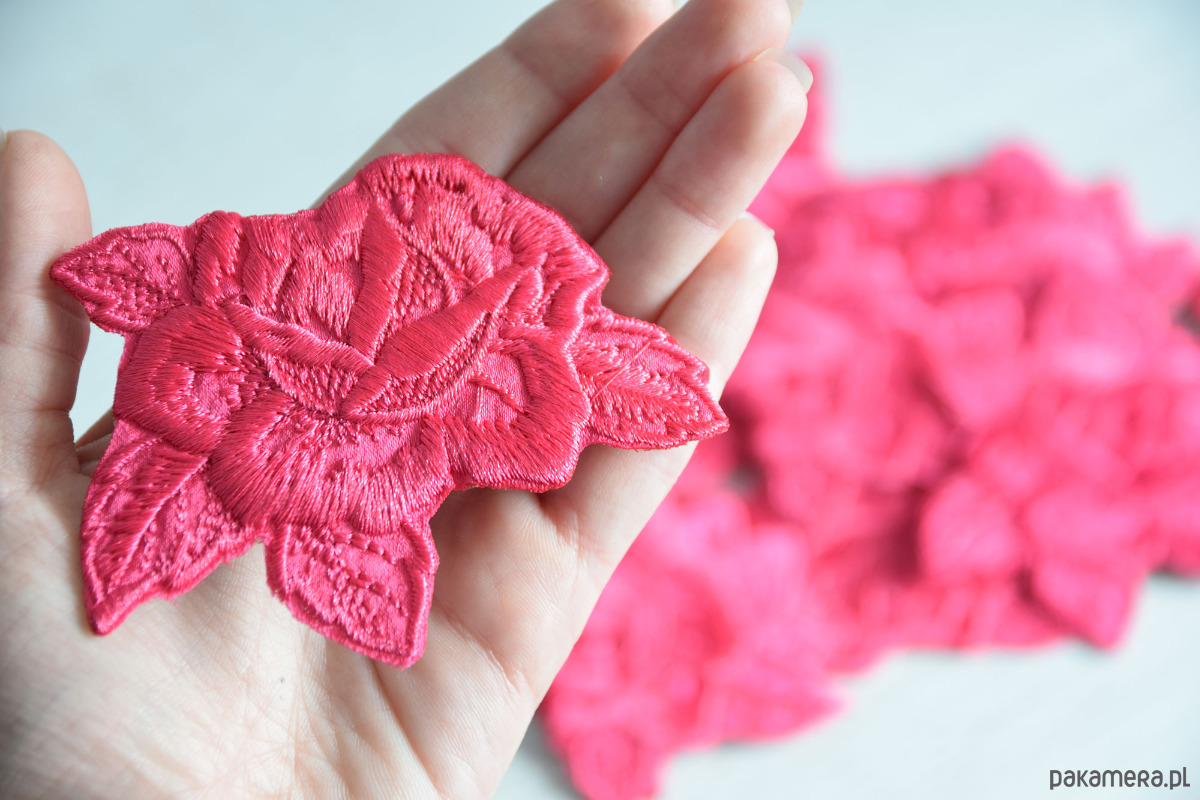 Różowa naszywka z motywem róży to świetny sposób na odświeżenie garderoby, zakrycie przetarcia materiału lub stworzenie unikalnej, spersonalizowanej stylizacji.