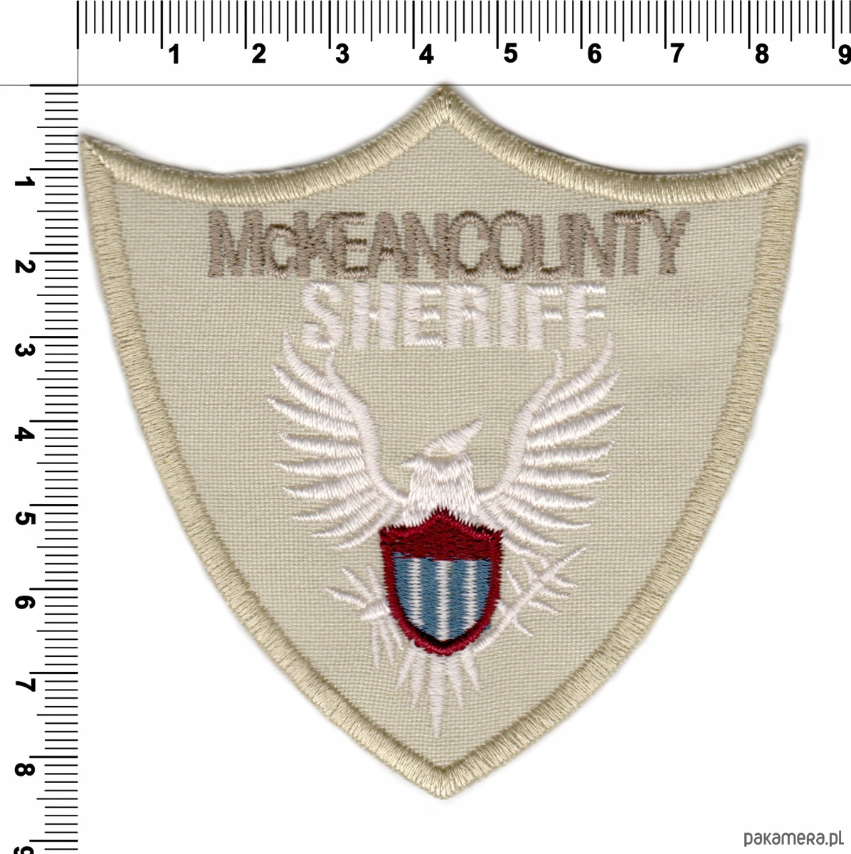 Naszywka naprasowanka SHERIFF termo haft POLSKIE 8,5x8,5cm beżowa::