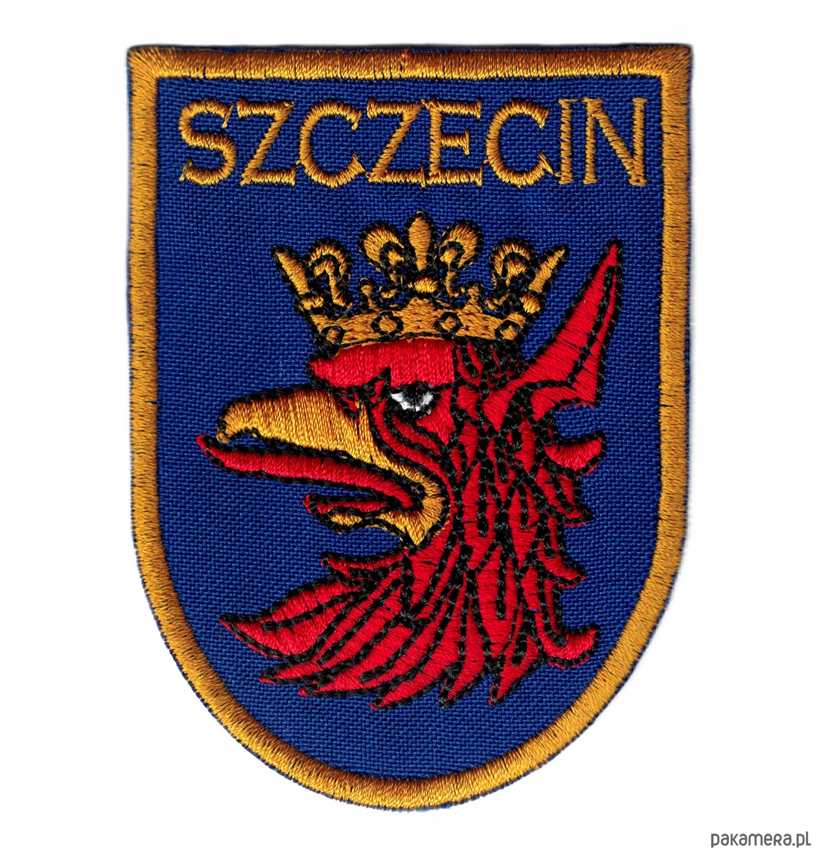 HAFTOWANA NASZYWKA TERMOPRZYLEPNA - SZCZECIN GRYFNaszywka Haftowana Herb Szczecina – Gryf w Koronie (Tarcza)Wyraź dumę ze swojego miasta lub wzogać swoją kolekcję o haftowaną naszywkę z herbem Szczecina. Ta elegancka oznaka w kształcie tarczy przedstawia oficjalny symbol stolicy Pomorza Zachodniego – majestatyczną głowę Gryfa w złotej koronie. To idealny wybór dla patriotów lokalnych, harcerzy, członków grup rekonstrukcyjnych oraz turystów szukających trwałej pamiątki.Design i symbolika:Centralny motyw: Czerwony Gryf Pomorski z czarnym konturowaniem, wyhaftowany z dbałością o najmniejsze detale, takie jak groźne spojrzenie czy pióra.
