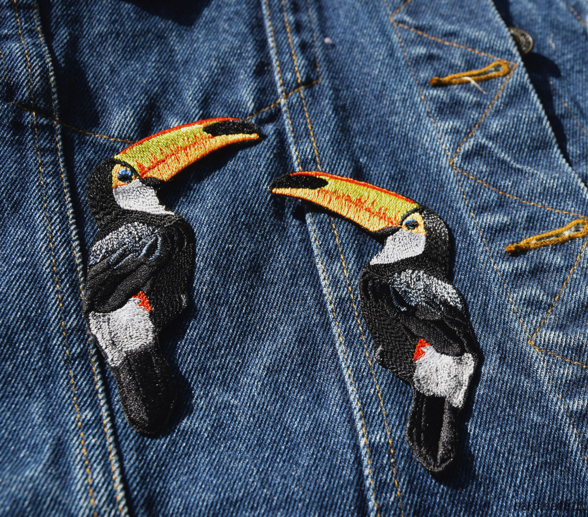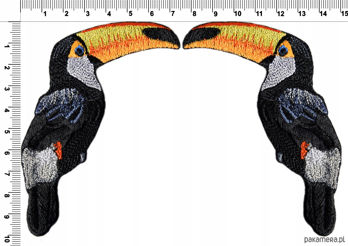 Naszywka naprasowanka termoprzylepna haftowana TUKANY ZESTAW 7,5x10cm::