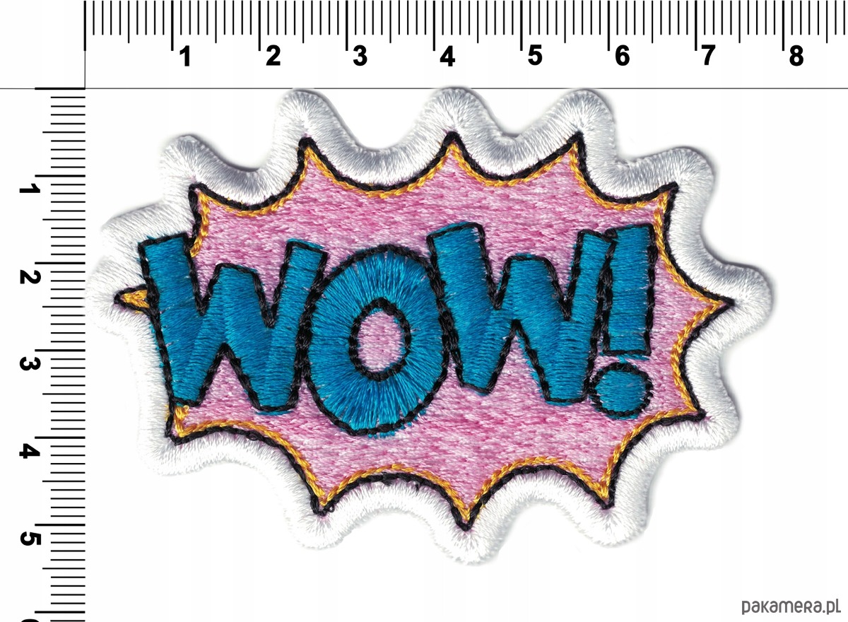 Naszywka naprasowanka WOW NIEBIESKA termoprzylepna haft 7,8x5,5cm