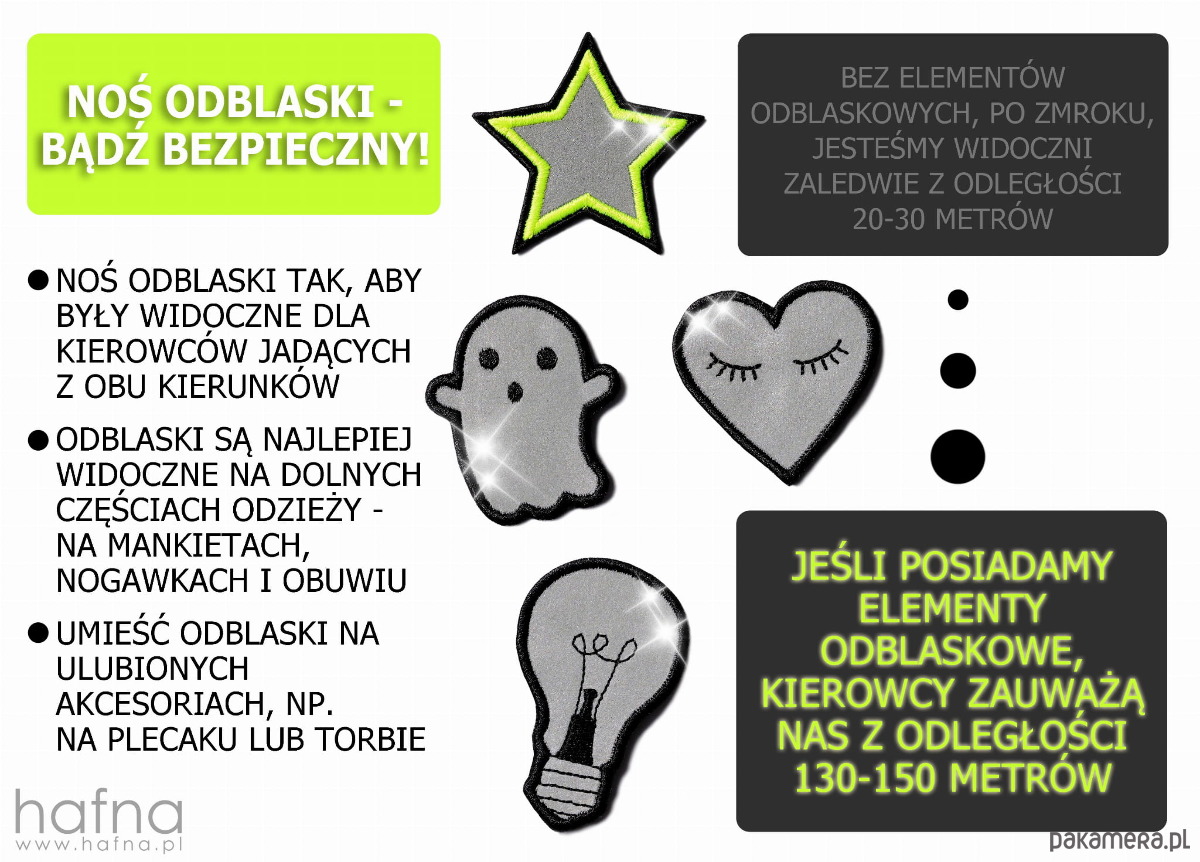 Dzięki odblaskowym elementom Ty i Twoje dziecko będziecie lepiej widoczni dla kierowców.