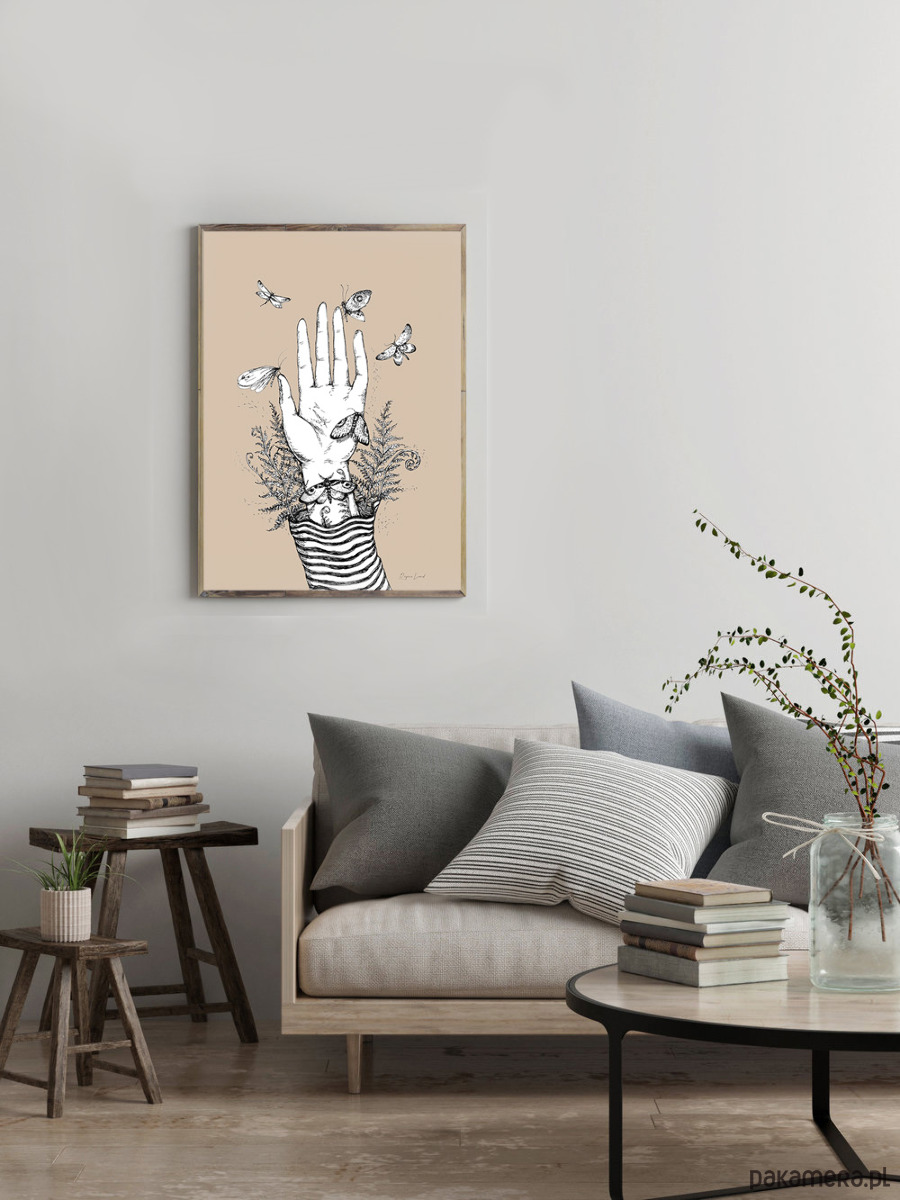 Przyjemne beżowe tło z delikatnym czarnym rysunkiem ociepli nasze otoczenie.