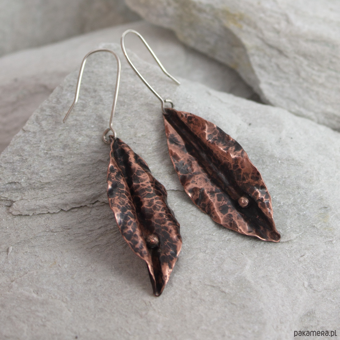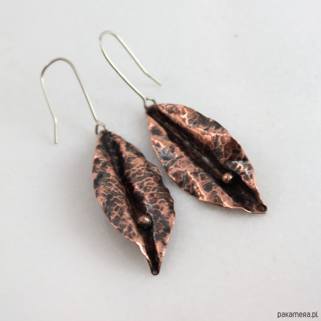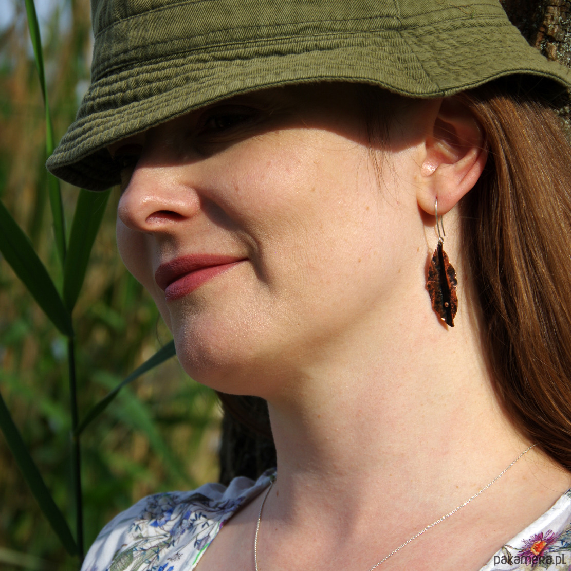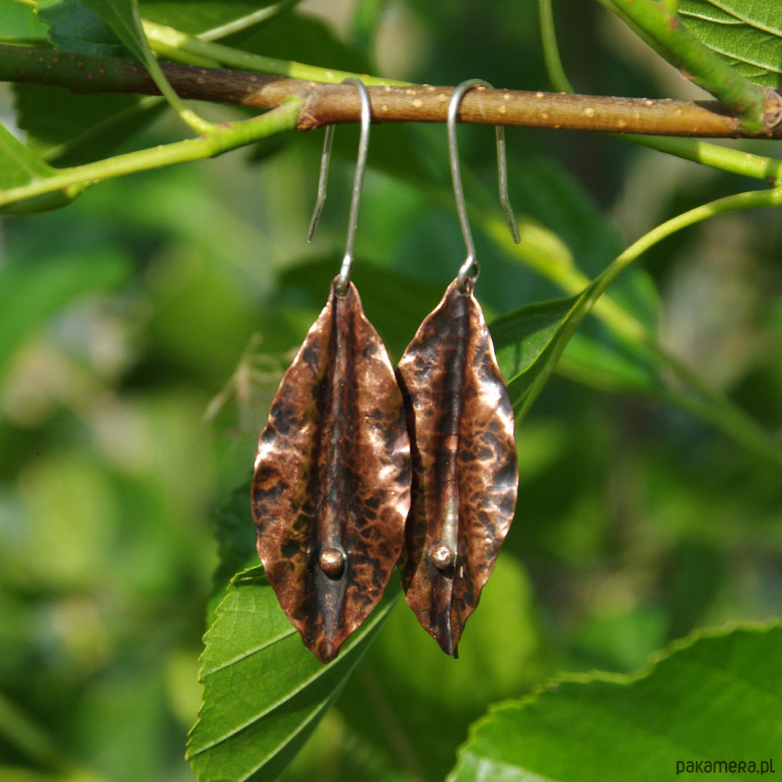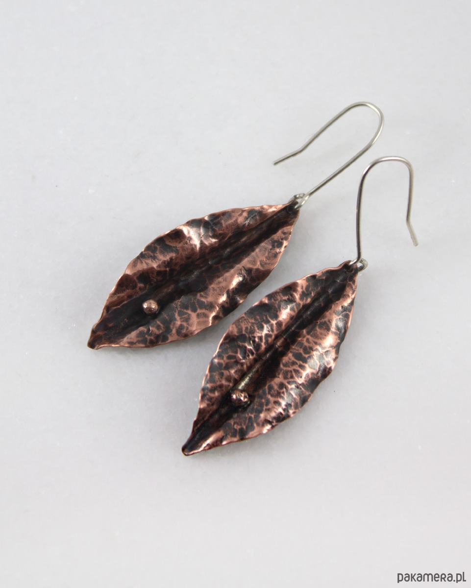 Duże kolczyki o intrygującym kształcie. Wykonane wysokogatunkowej miedzi.