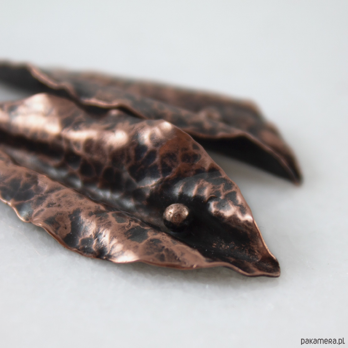 Faktura podkreślona ciemną patyną uzyskaną w procesie oksydacji (bez użycia barwników).