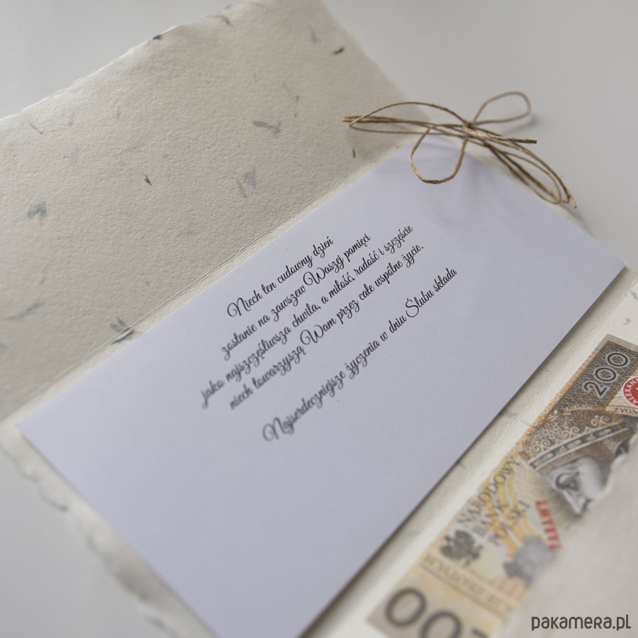 Karta jest wysyłana pusta, do ręcznego wypisania życzeń prosto z serca. Jeśli wolisz załączę życzenia ślubne widoczne na zdjęciu (daj znać od razu po zakupie).