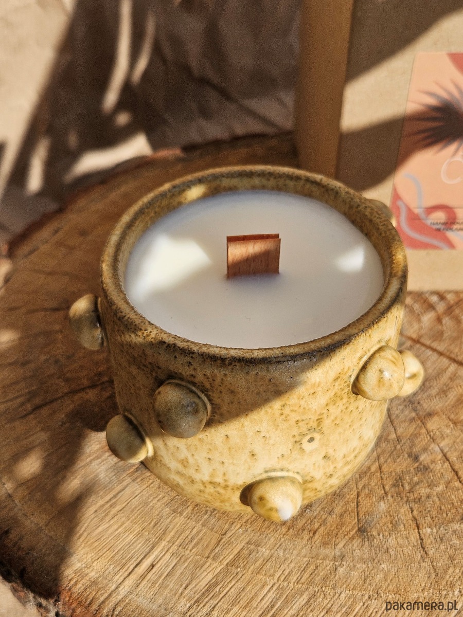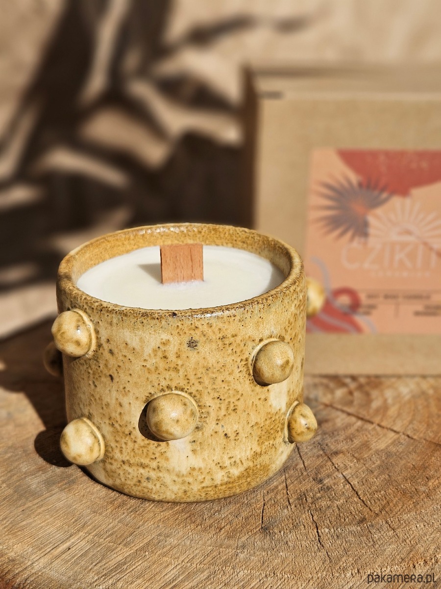 Naturalne świece sojowe Czikita Ceramics są wykonane z bezzapachowego wosku sojowego (biodegradowalnego i nietoksycznego). Posiadają podwójny, bukowy knot, który w trakcie palenia wydaje przyjemne trzaski, przywodzące na myśl drewno palące się w kominku. Bardzo relaksujące :)
