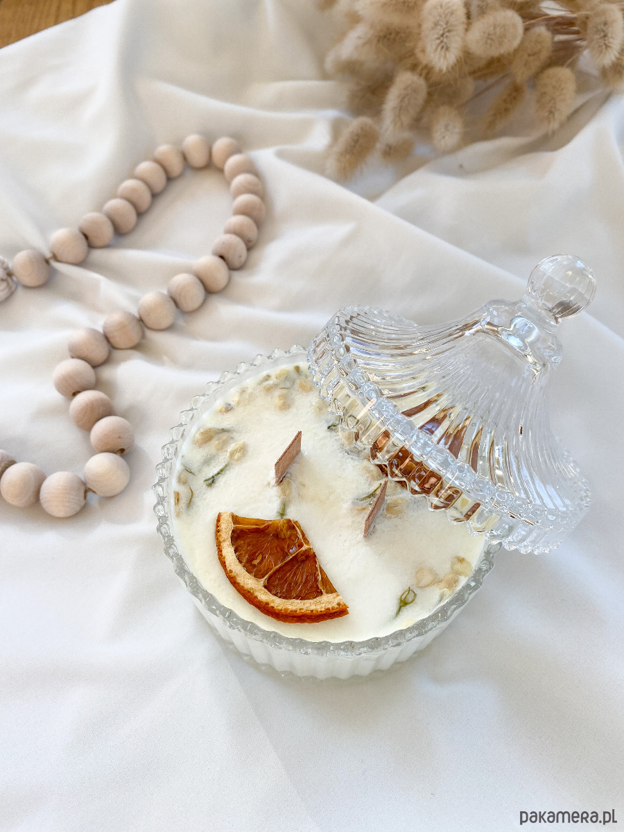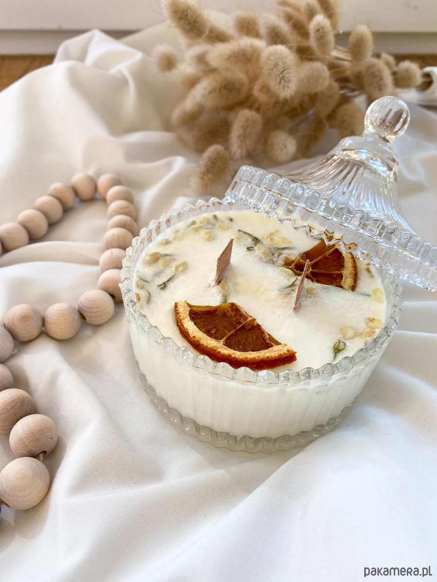 Każda z produkowanych przez Nas świec zapachowych wykonana jest z ekologicznego, certyfikowanego wosku sojowego. Wosk sojowy jest w 100% naturalny i ekologiczny – powstaje jako produkt uboczny uprawy soi. Wosk pali się znacznie dłużej niż zwykła parafina i nie szkodzi zdrowiu. Każda tworzona przez nas świeca sojowa jest wykonywana ręcznie. Wosk sojowy topi się dłużej, jego temperatura spalania jest niższa niż parafiny, dlatego świece sojowe mają nawet dwa razy dłuższy czas palenia w porównaniu do świec parafinowych.