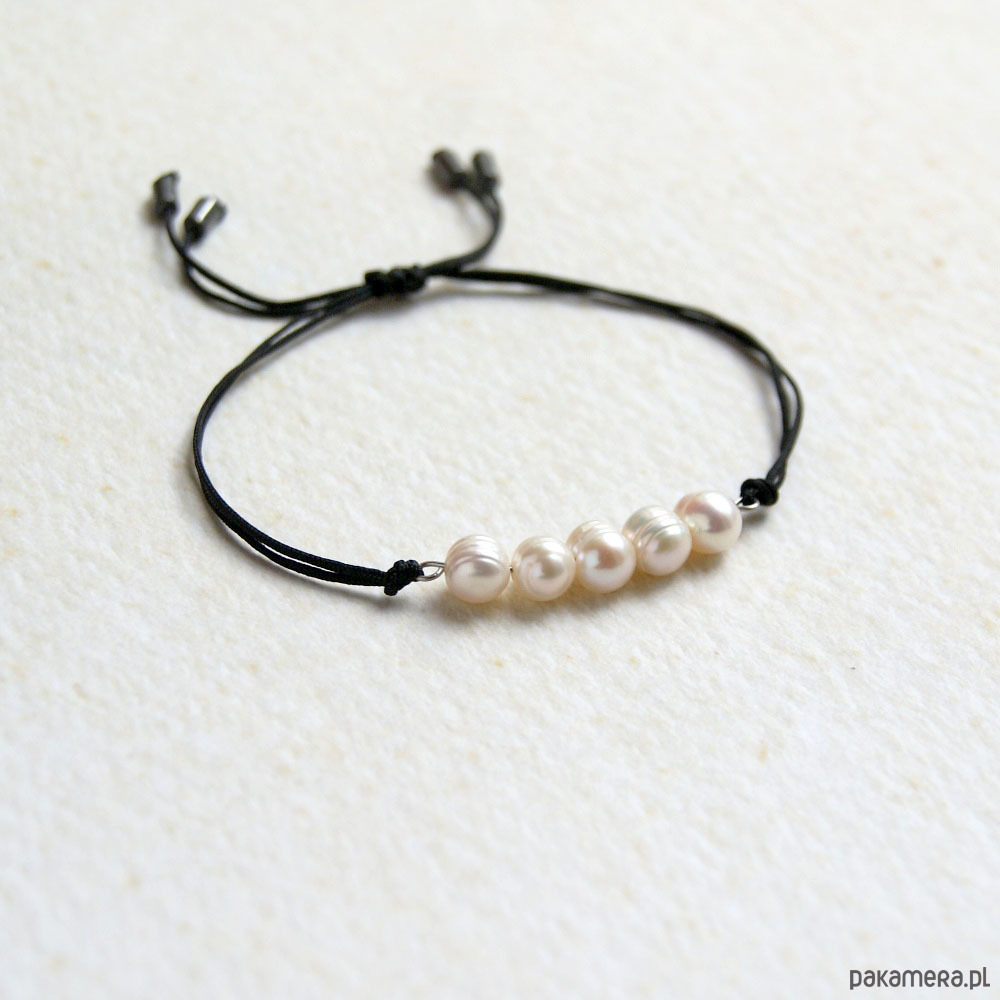 klasyczne połączenie złamanej bieli naturalnych pereł słodkowodnych z czernią sznureczka.