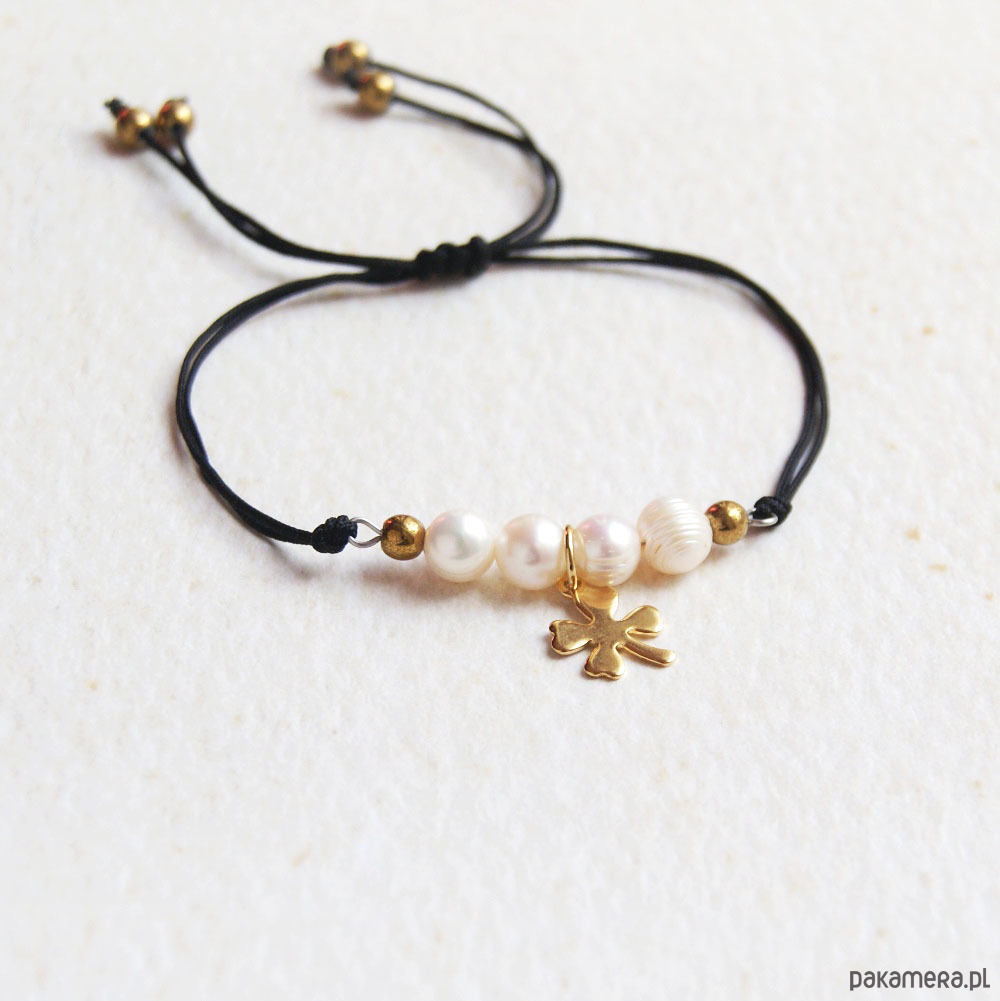 klasyczne połączenie złamanej bieli naturalnych pereł słodkowodnych z czernią sznureczka.