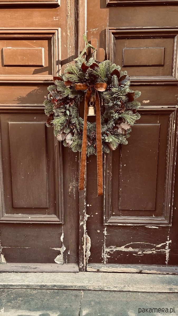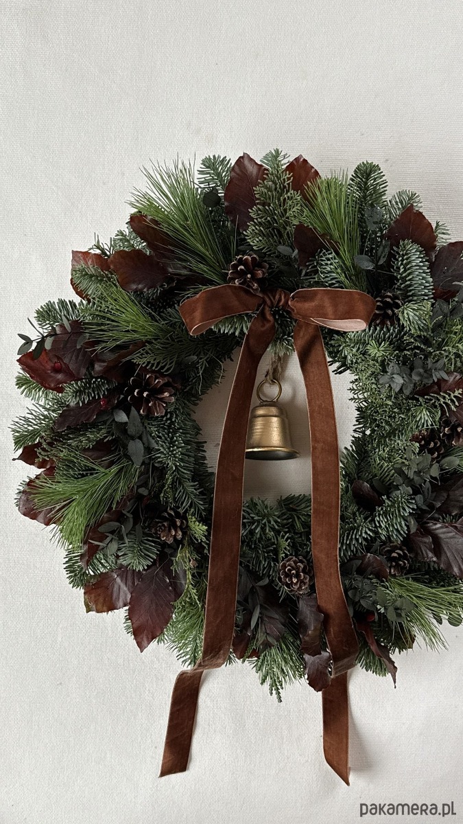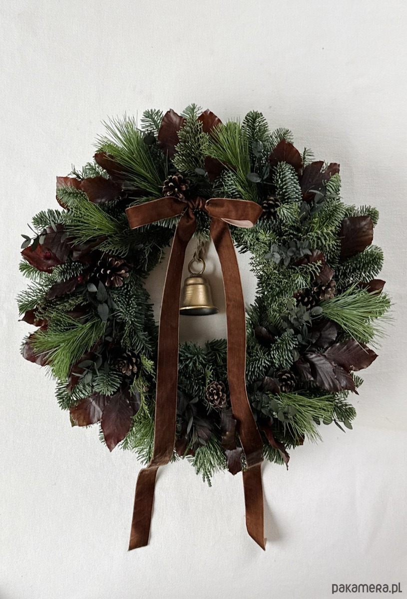 NATURALNY Wianek Bożonarodzeniowy na drzwi Z DZWONKIEM - 45cm