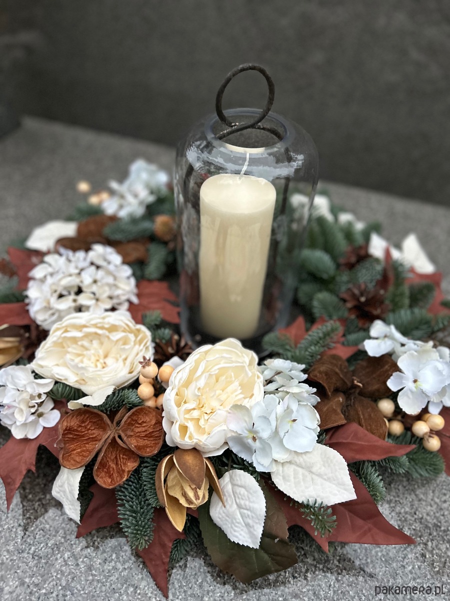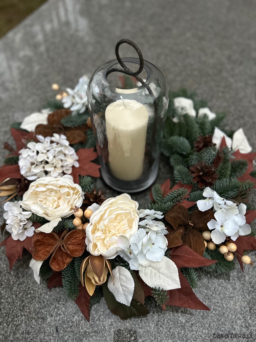 Wianek naturalny, wykonany z wysokiej jakości Jodły Nobilis. Dodatkiem są sztuczne, naturalnie wyglądające dekoracje.