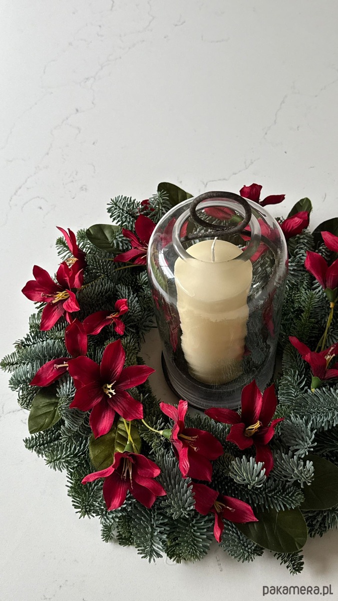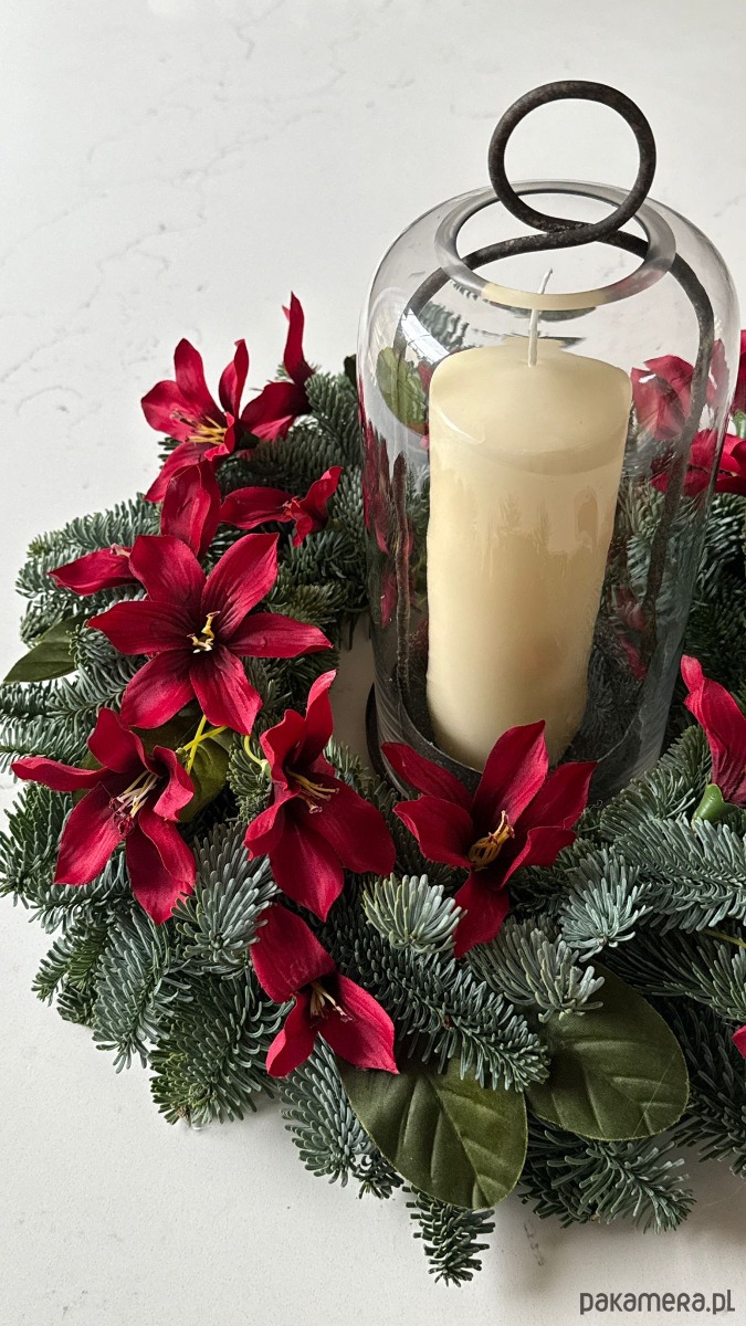 Wianek naturalny, wykonany z wysokiej jakości Jodły Nobilis. Dodatkiem są sztuczne, naturalnie wyglądające dekoracje.