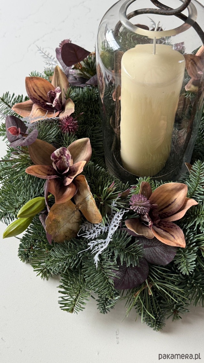Wianek naturalny, wykonany z wysokiej jakości Jodły Nobilis. Dodatkiem są sztuczne, naturalnie wyglądające dekoracje.