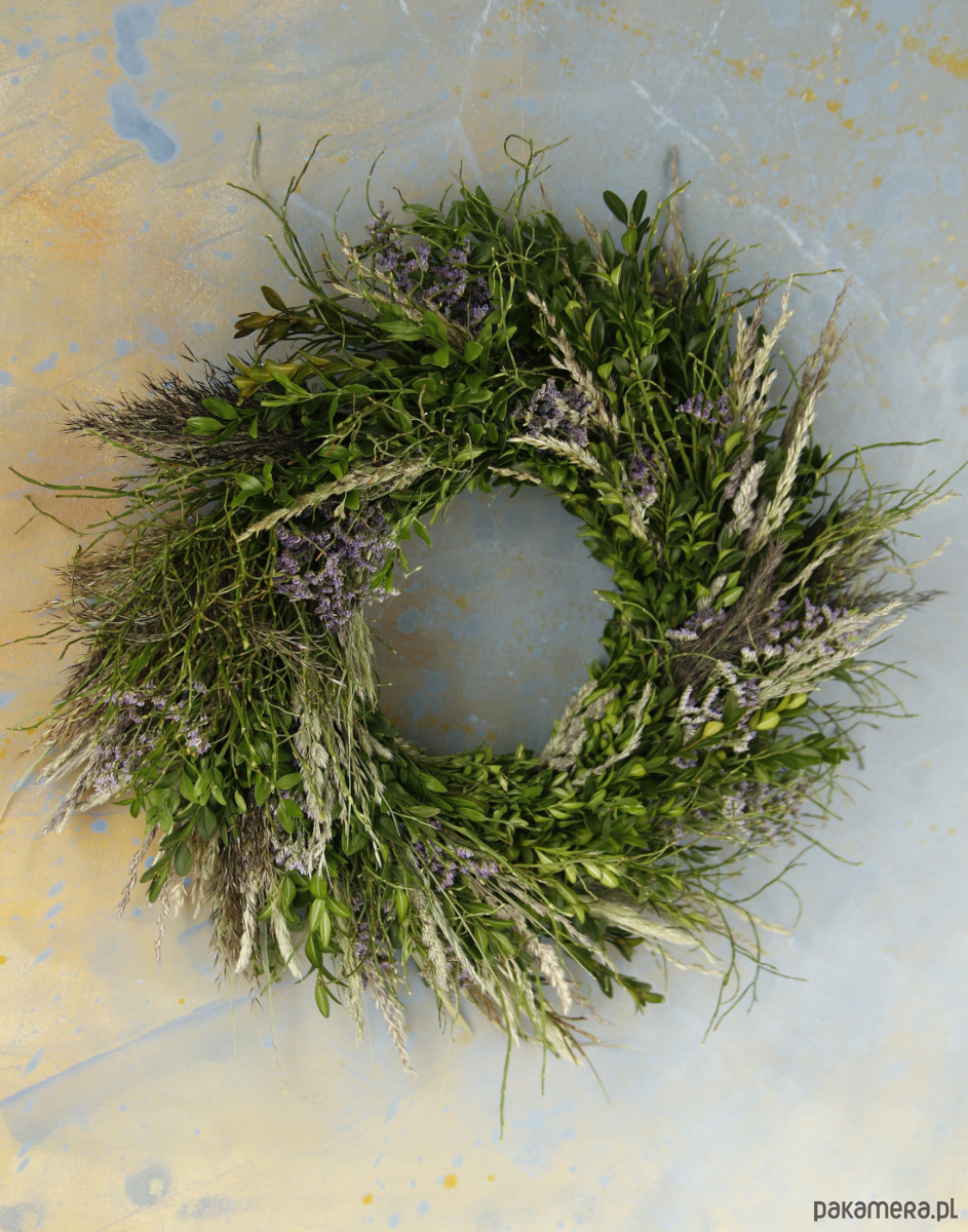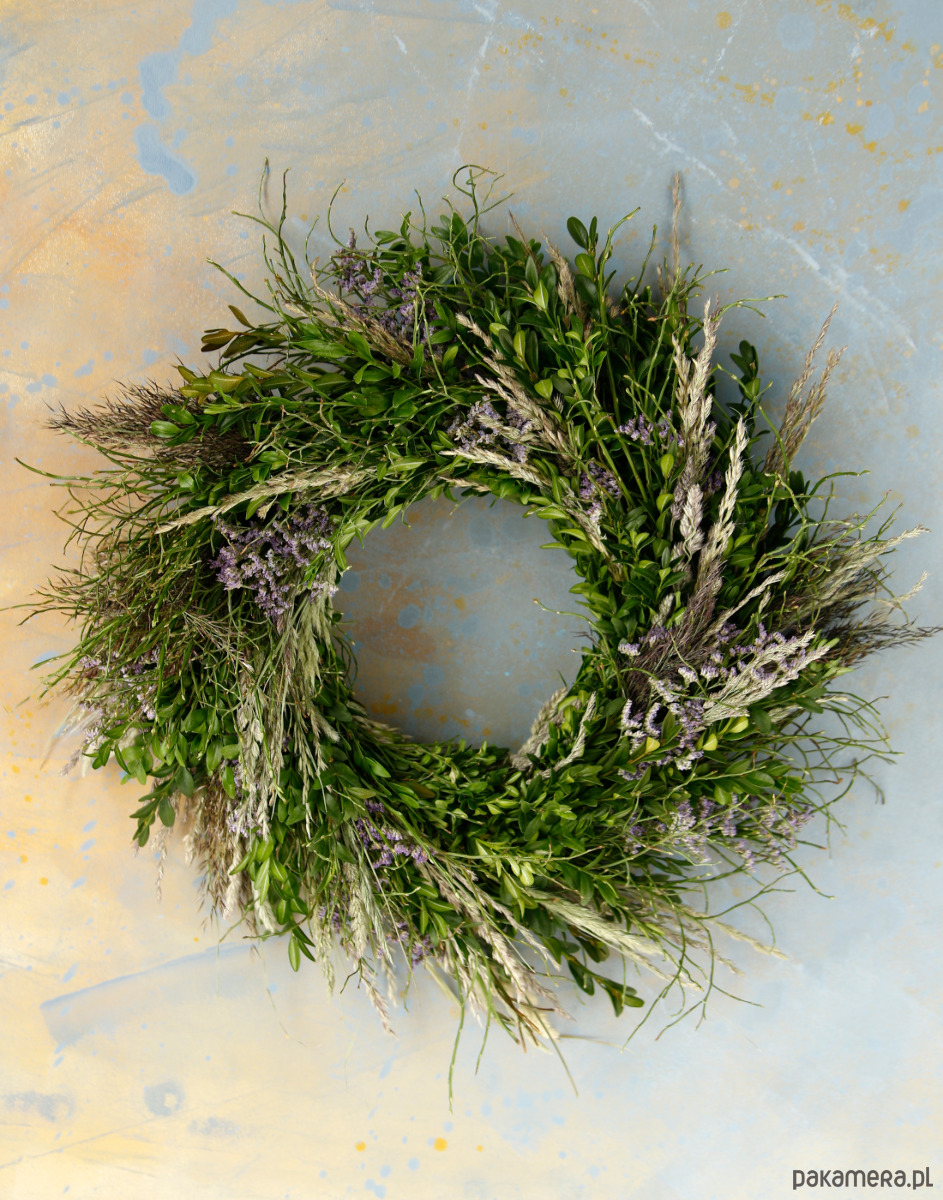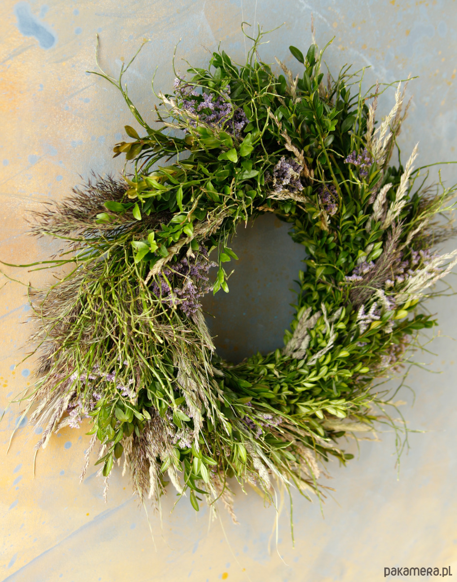 Jest to trwała dekoracja na ścianę lub drzwi, ozdobi przestrzeń przez długi czas. Zielone gałązki ładnie się zasuszają i zachowują swój kształt.