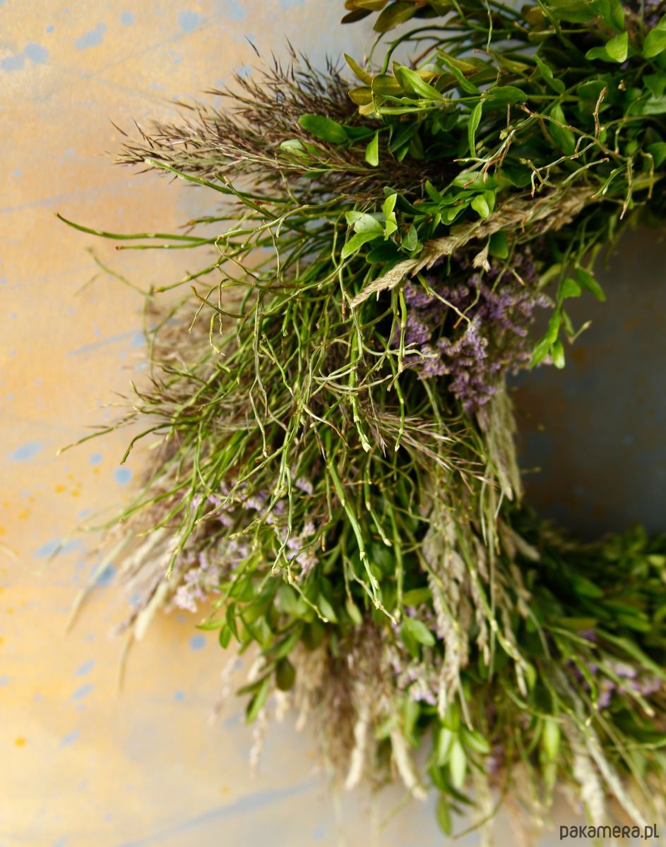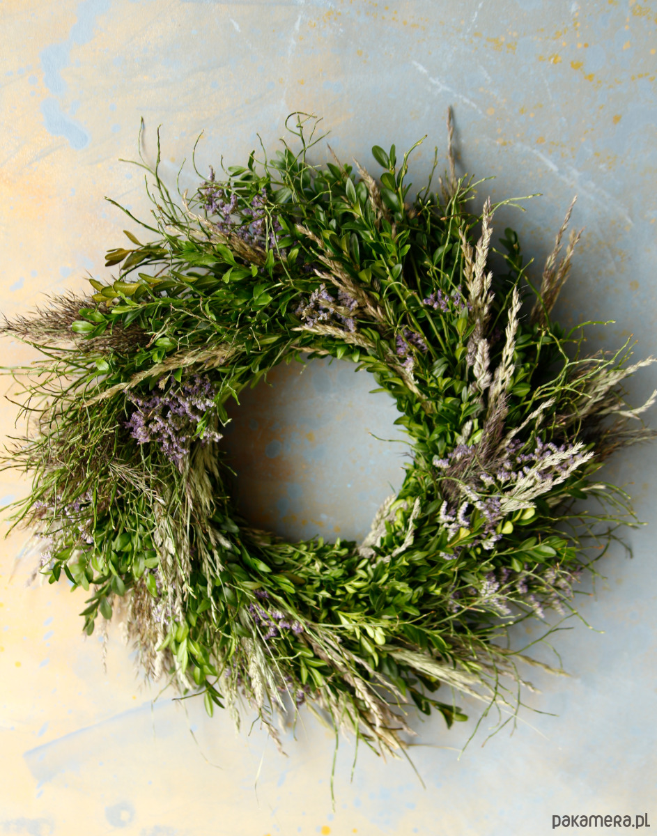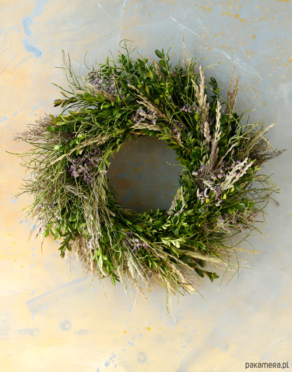 Jest to trwała dekoracja na ścianę lub drzwi, ozdobi przestrzeń przez długi czas. Zielone gałązki ładnie się zasuszają i zachowują swój kształt.
