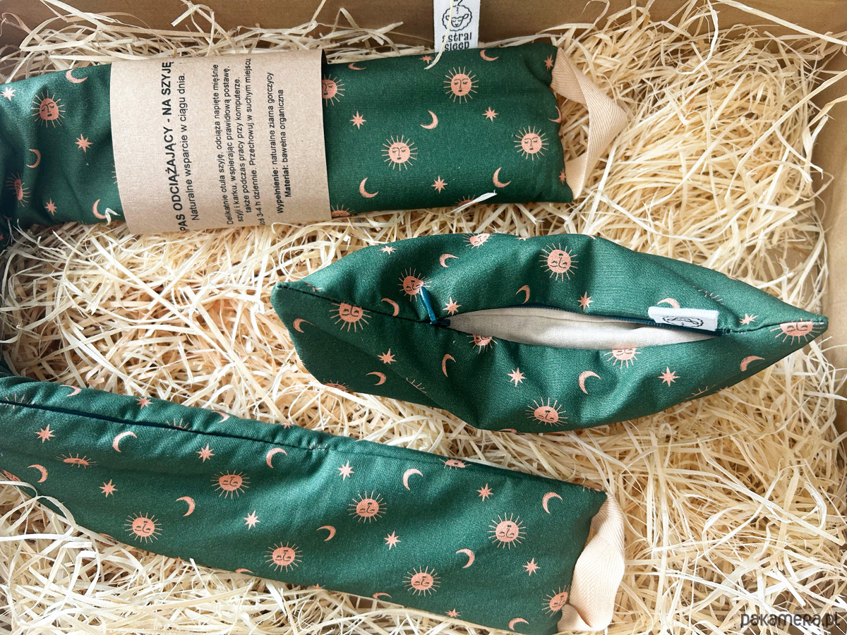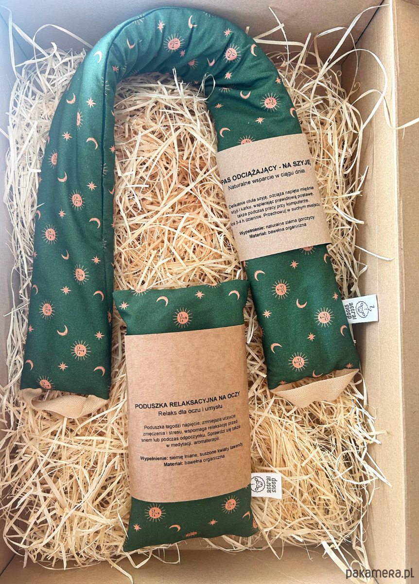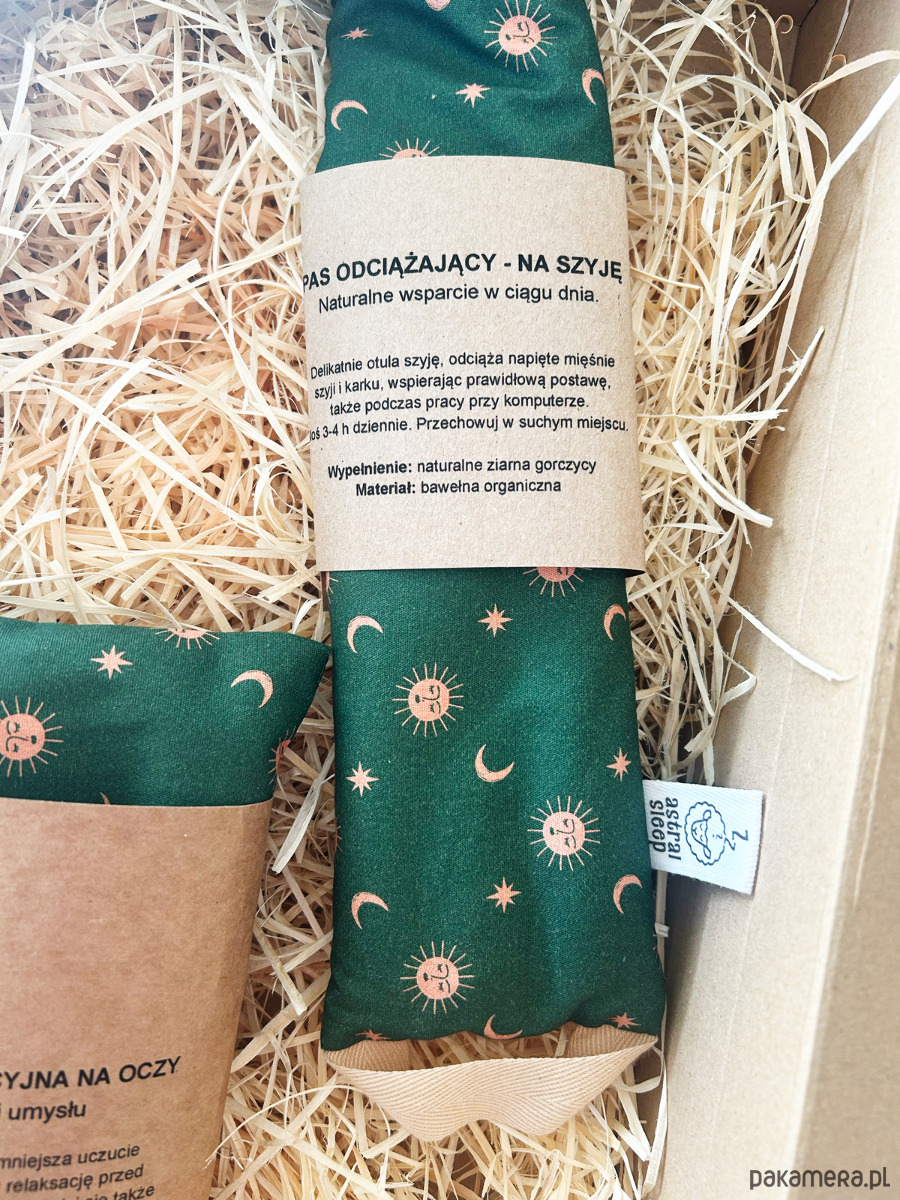 - Naturalny pas wypełniony ziarnami gorczycy, który przynosi ulgę zmęczonym mięśniom szyi i karku. Delikatnie dopasowuje się do ciała, rozluźnia napięcia i wspiera regenerację. Idealny przy pracy siedzącej, bólu karku, sztywności mięśni oraz codziennym stresie. Można go stosować na ciepło lub na zimno, w zależności od potrzeb. Pas należy nosić 3-4 godziny dziennie podczas pracy lub odpoczynku.