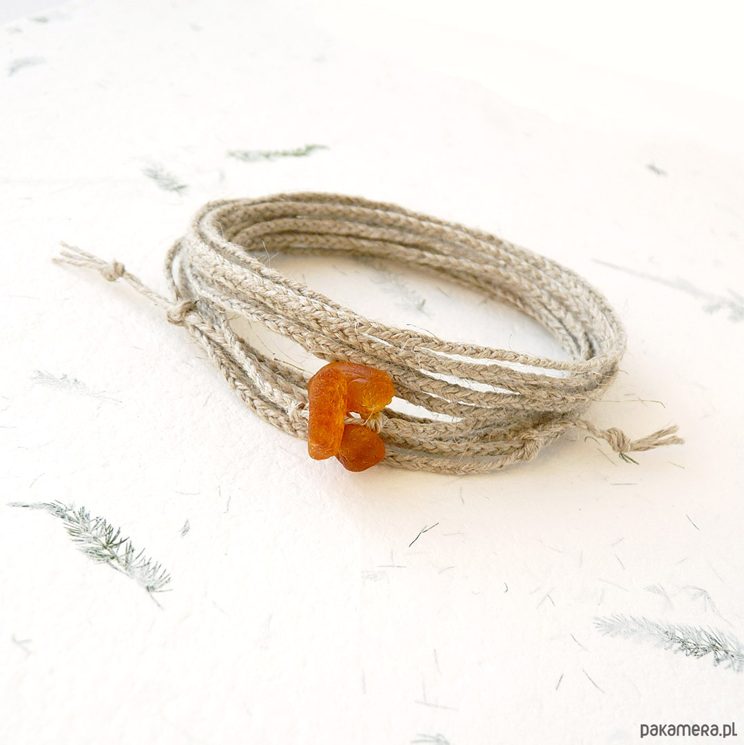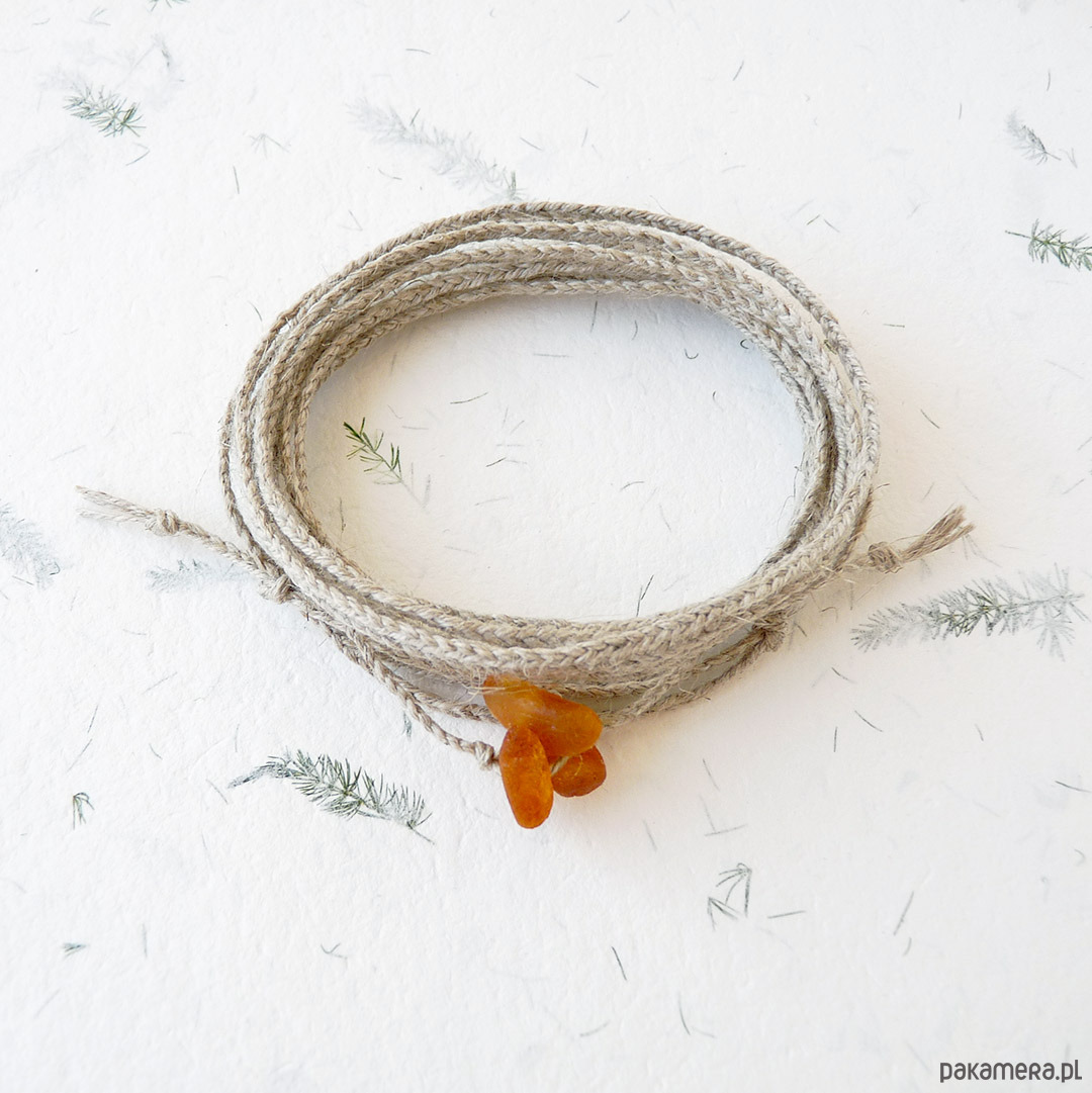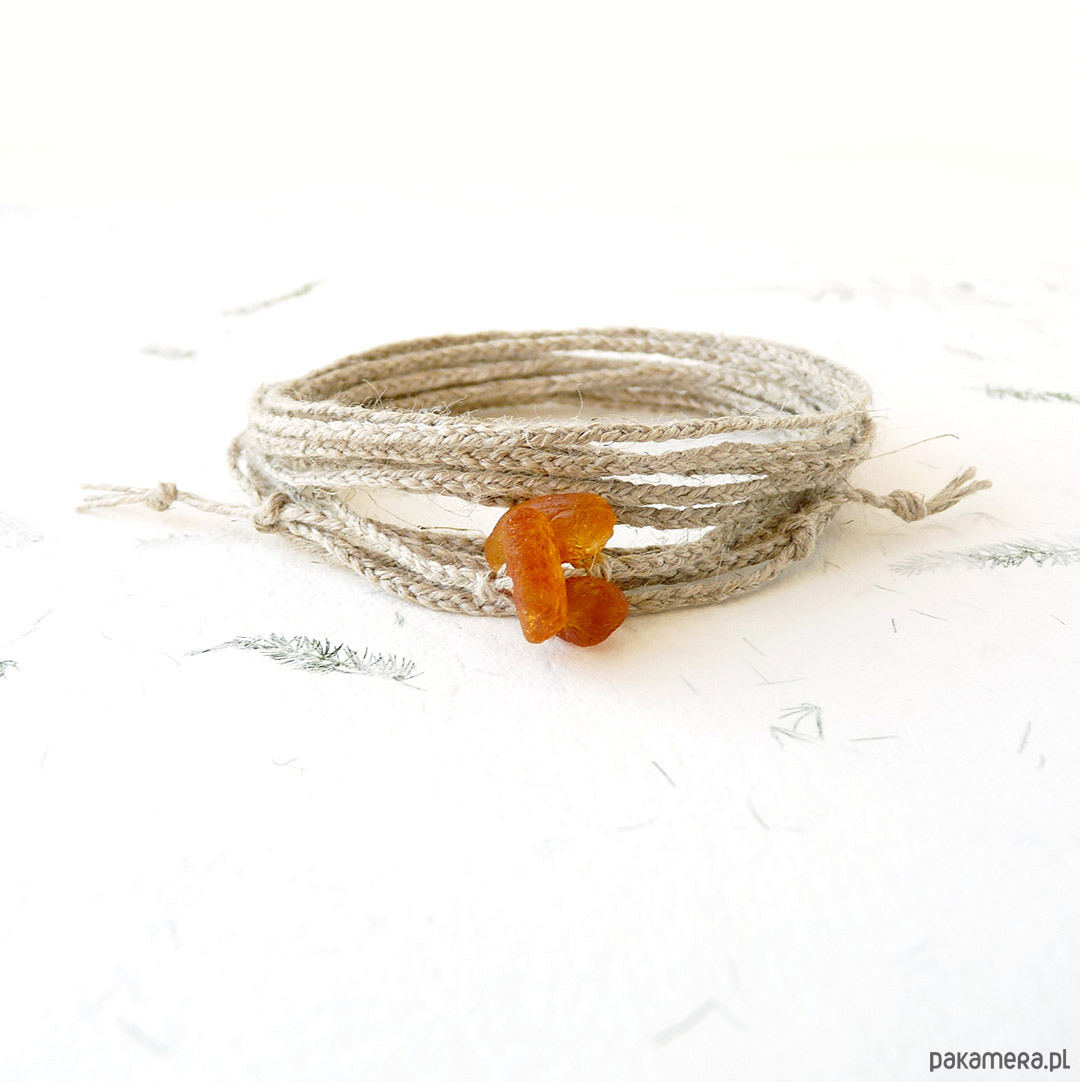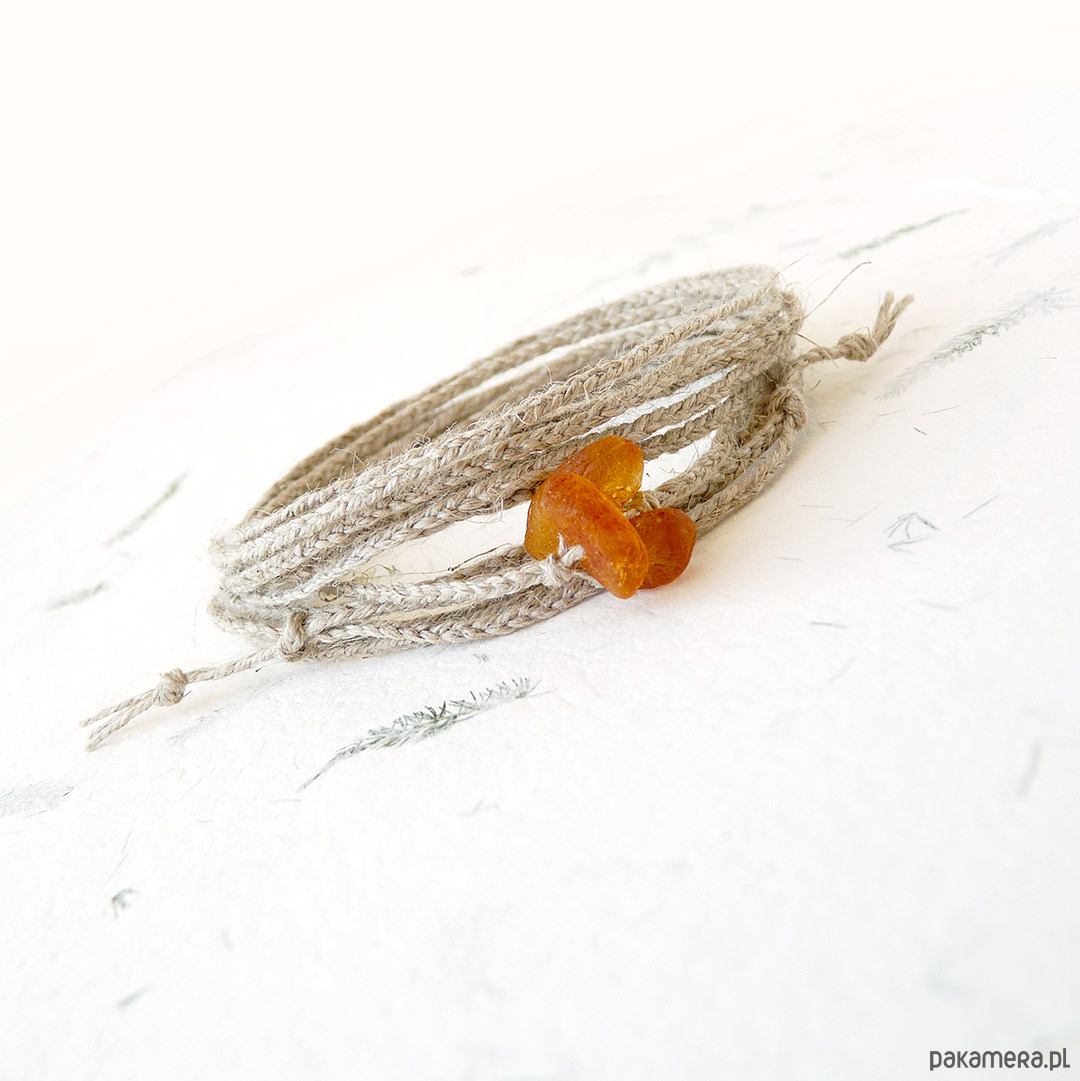NATURE Len i matowe bursztyny bransoletka