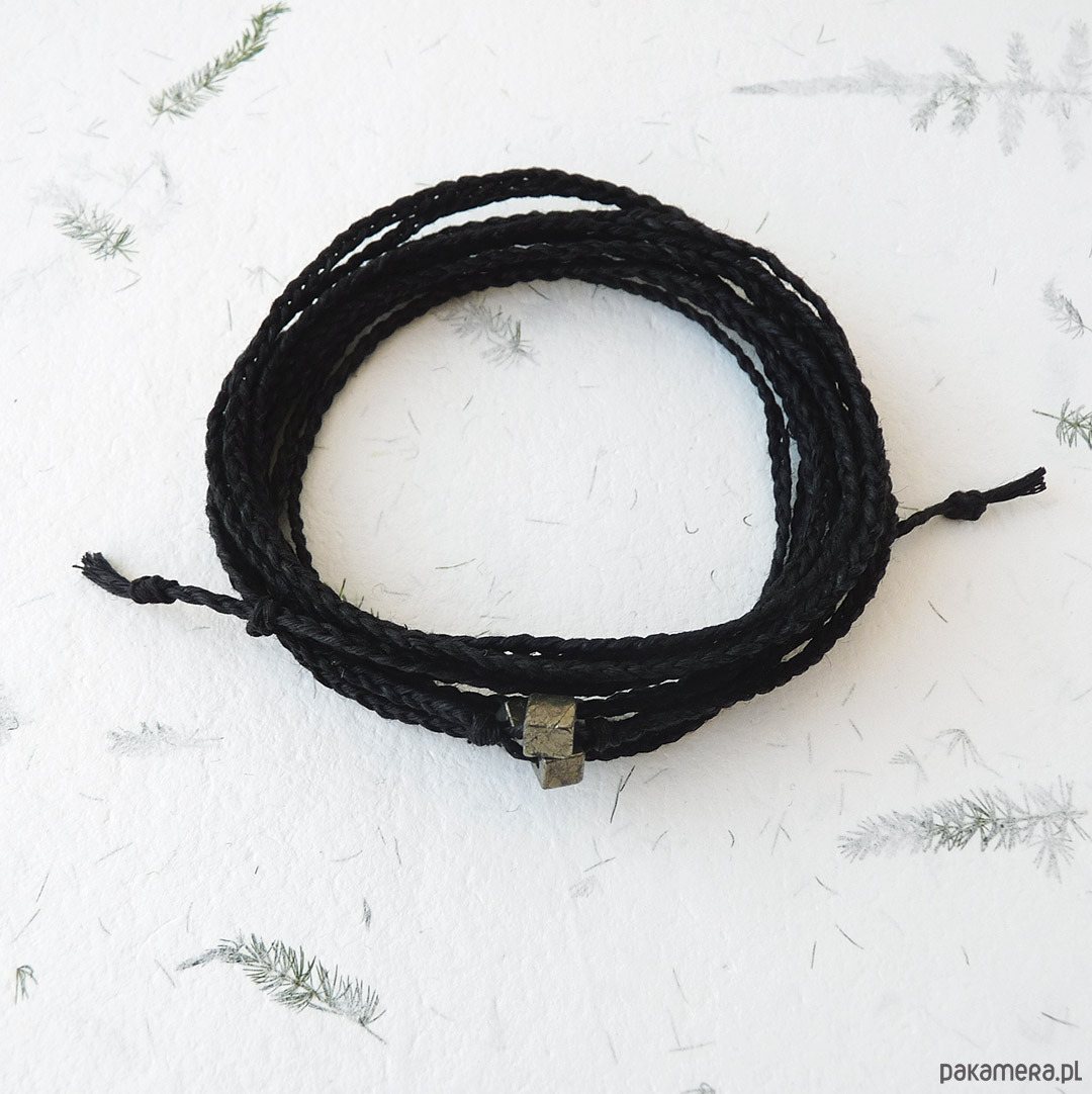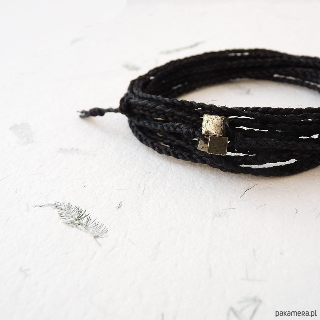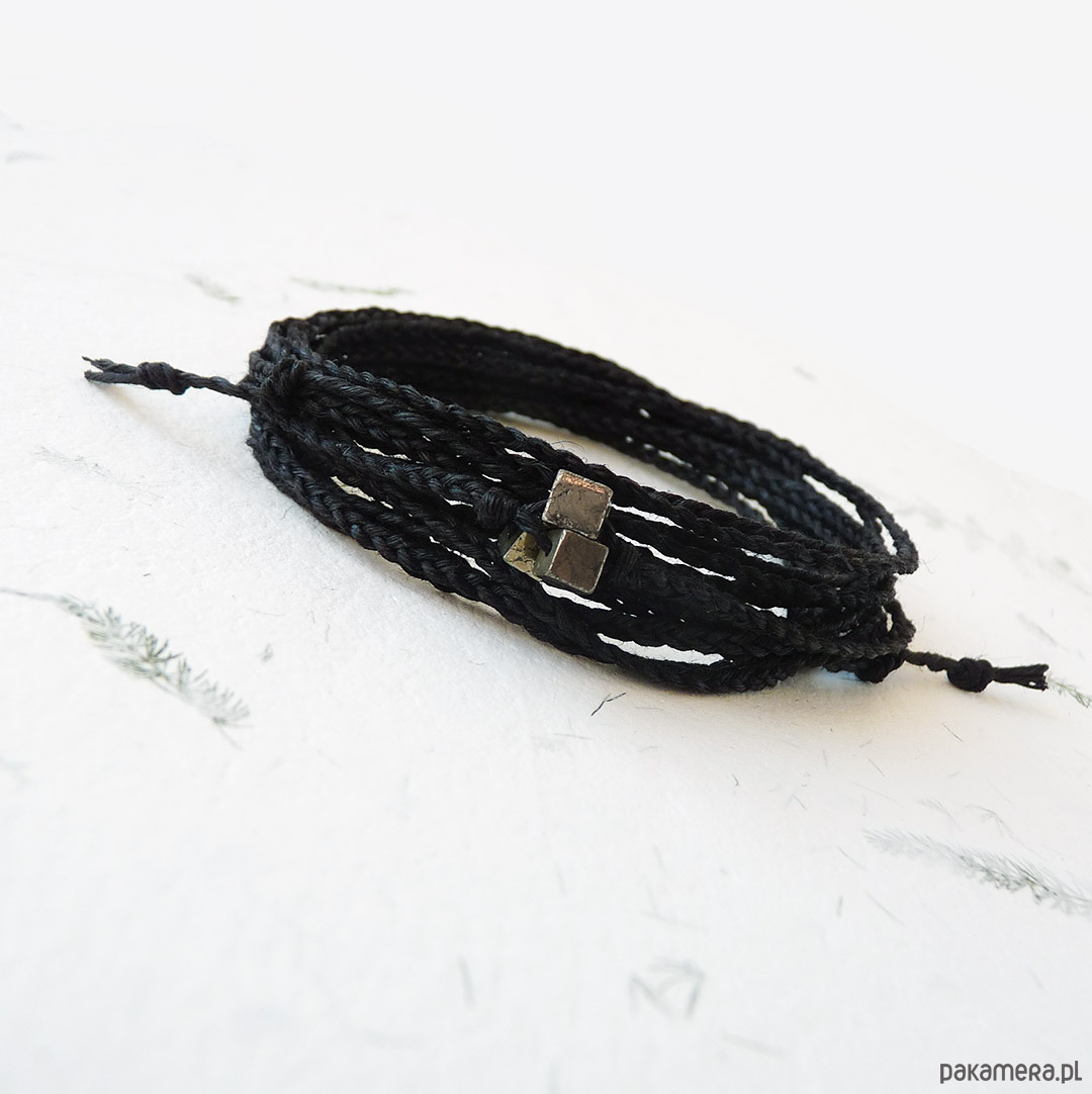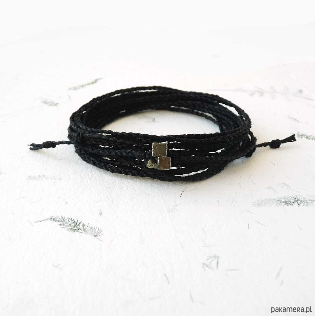 NATURE Len i piryt czarna bransoletka