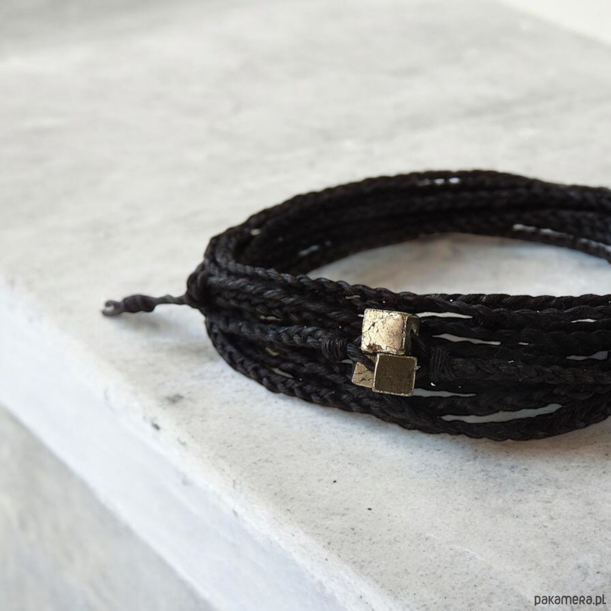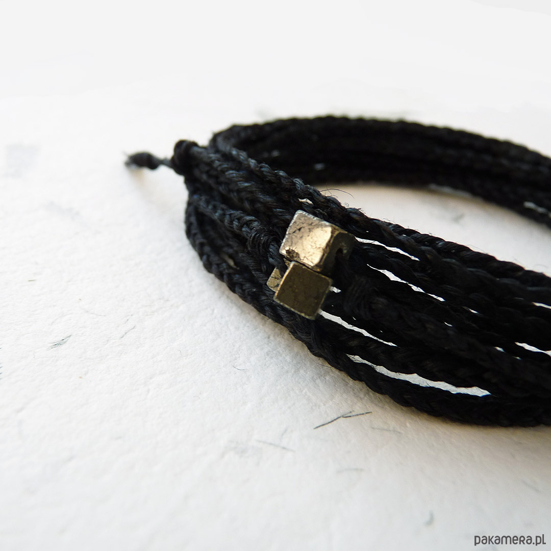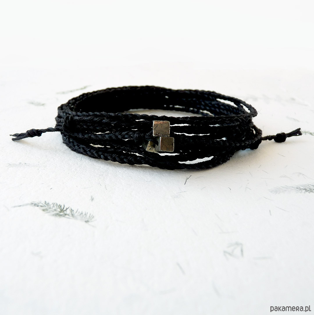 NATURE Len i piryt czarna bransoletka