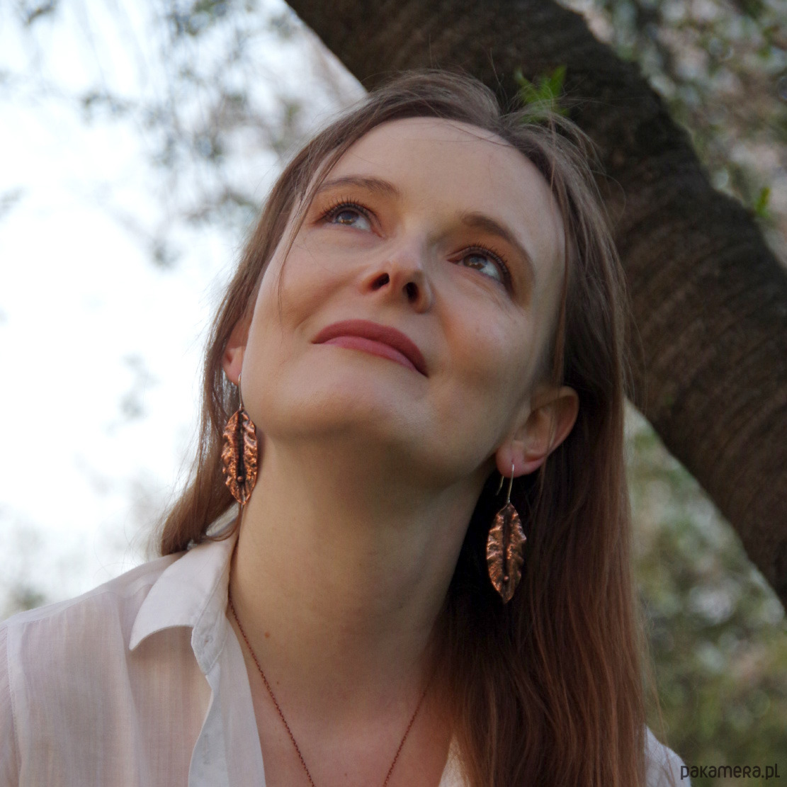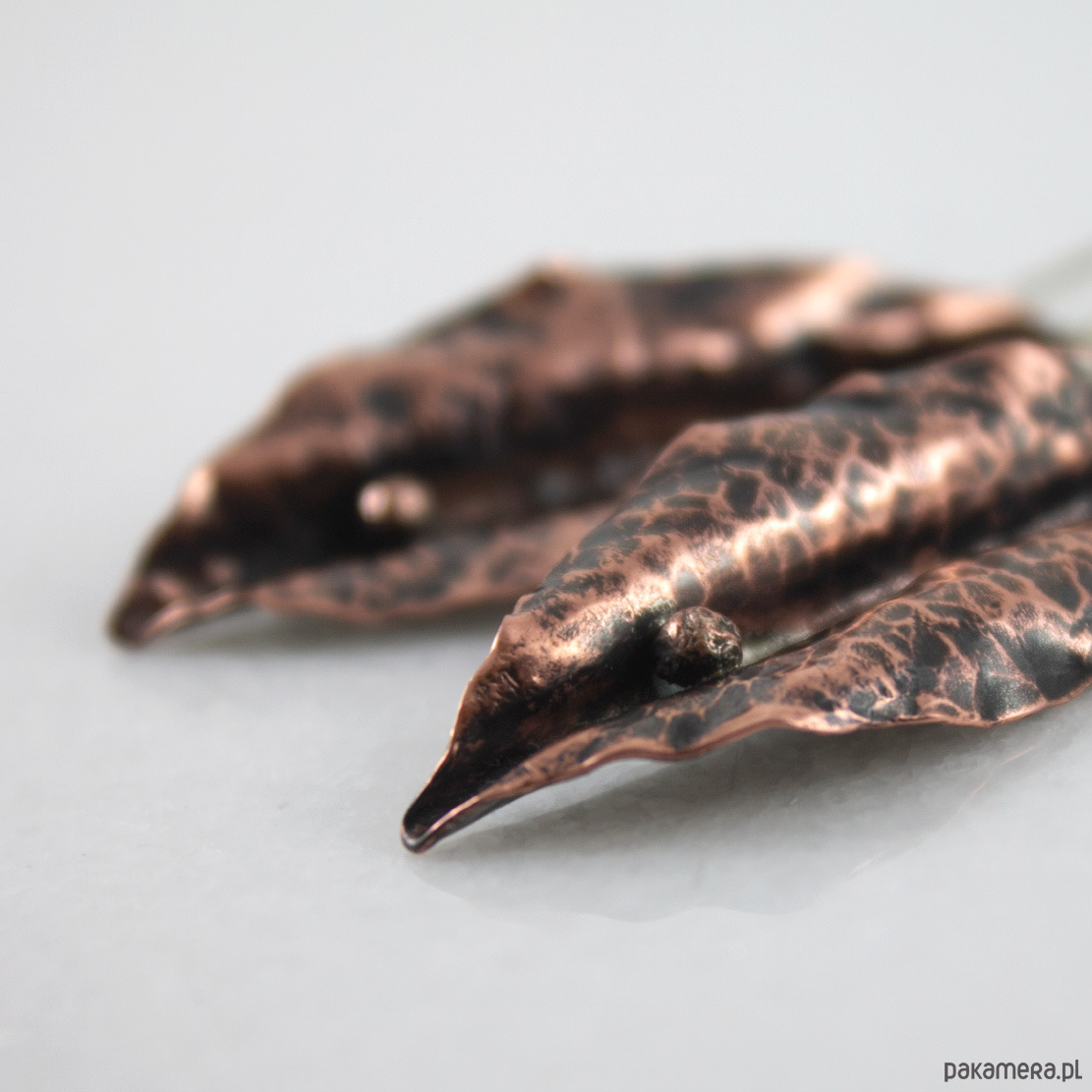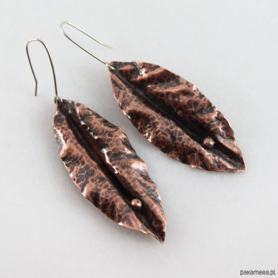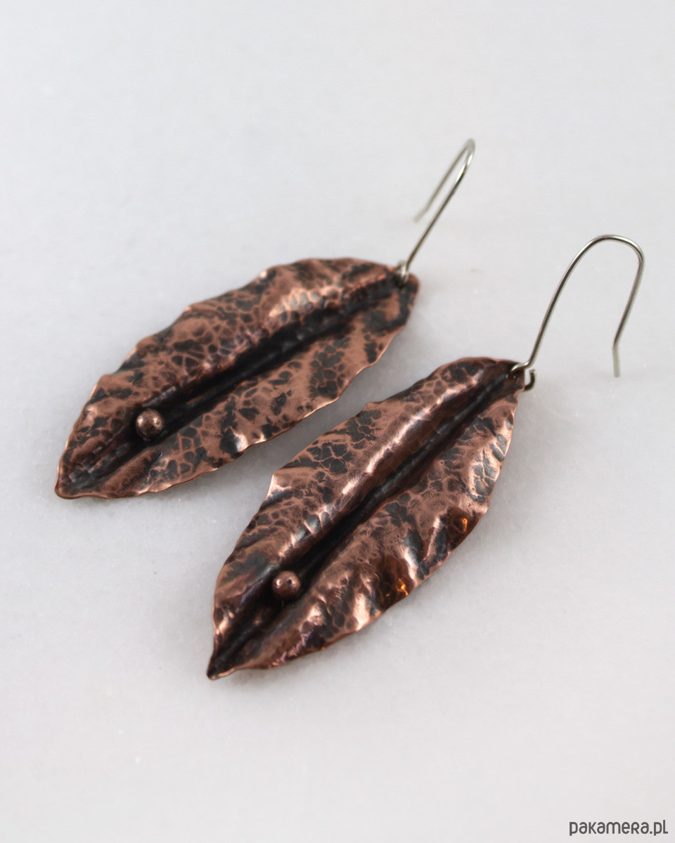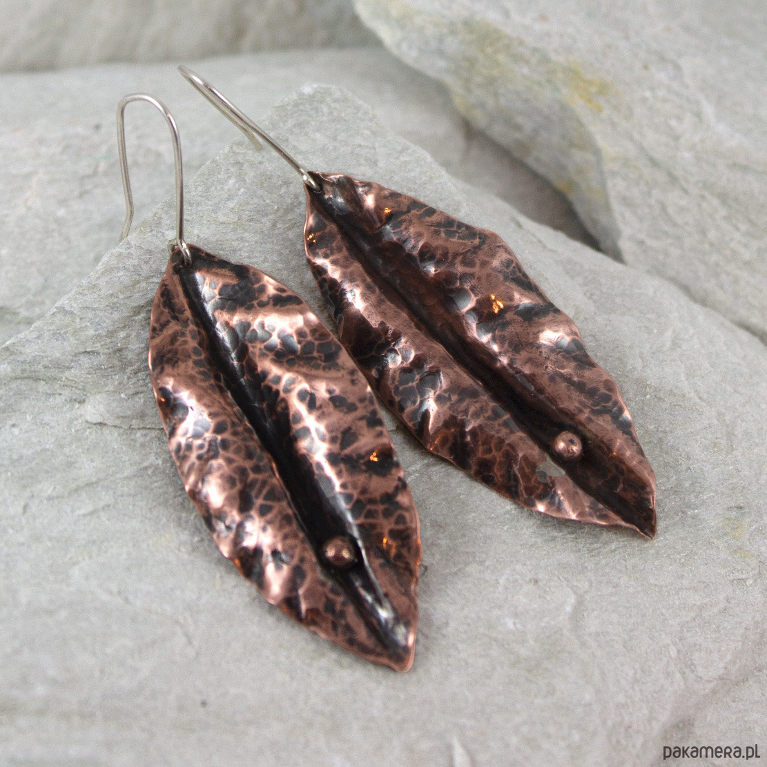 Duże kolczyki o intrygującym kształcie. Wykonane wysokogatunkowej miedzi.