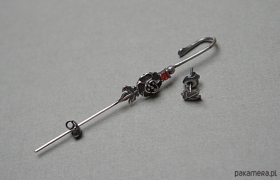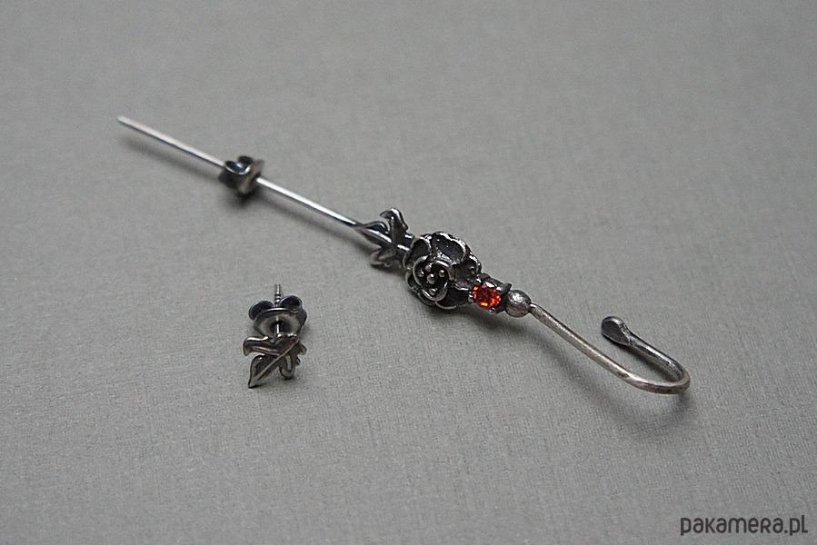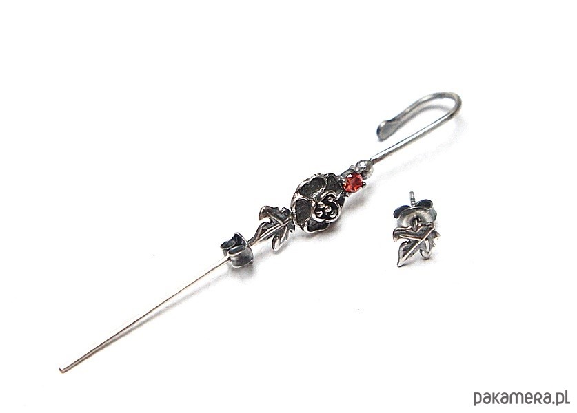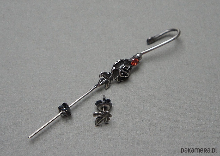 Kolczyki nausznica i sztyft wykonane ręcznie ze srebra [pr. 925] w połączeniu z cyrkonią [3mm]. Srebro oksydowane i przetarte. Biżuteria ozdobnie zapakowana.