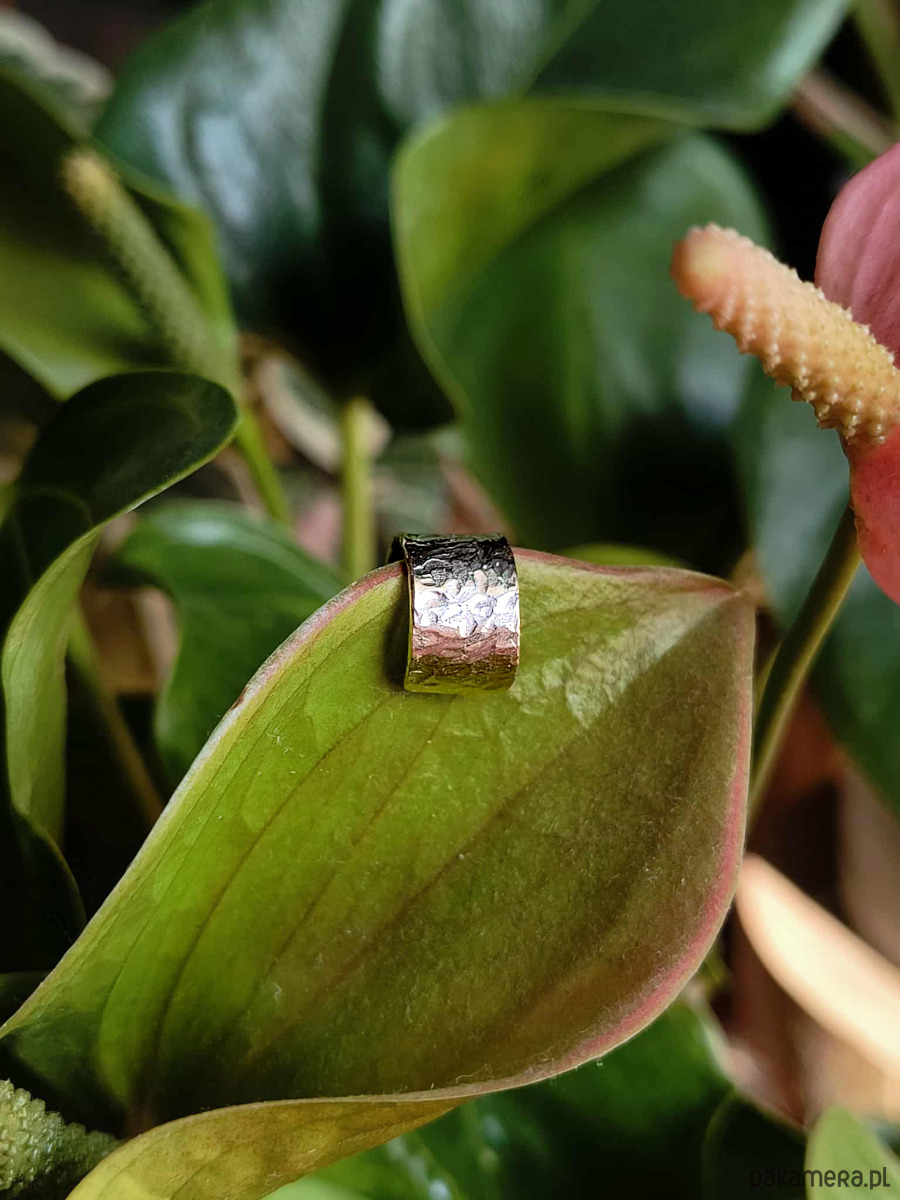 Nausznicę wykonałam własnoręcznie ze srebra próby 925. Powierzchnia jest ozdobiona fakturą, dzięki czemu pięknie załamuje światło, a oksydowane zagłębienia nadają wyrazistości.