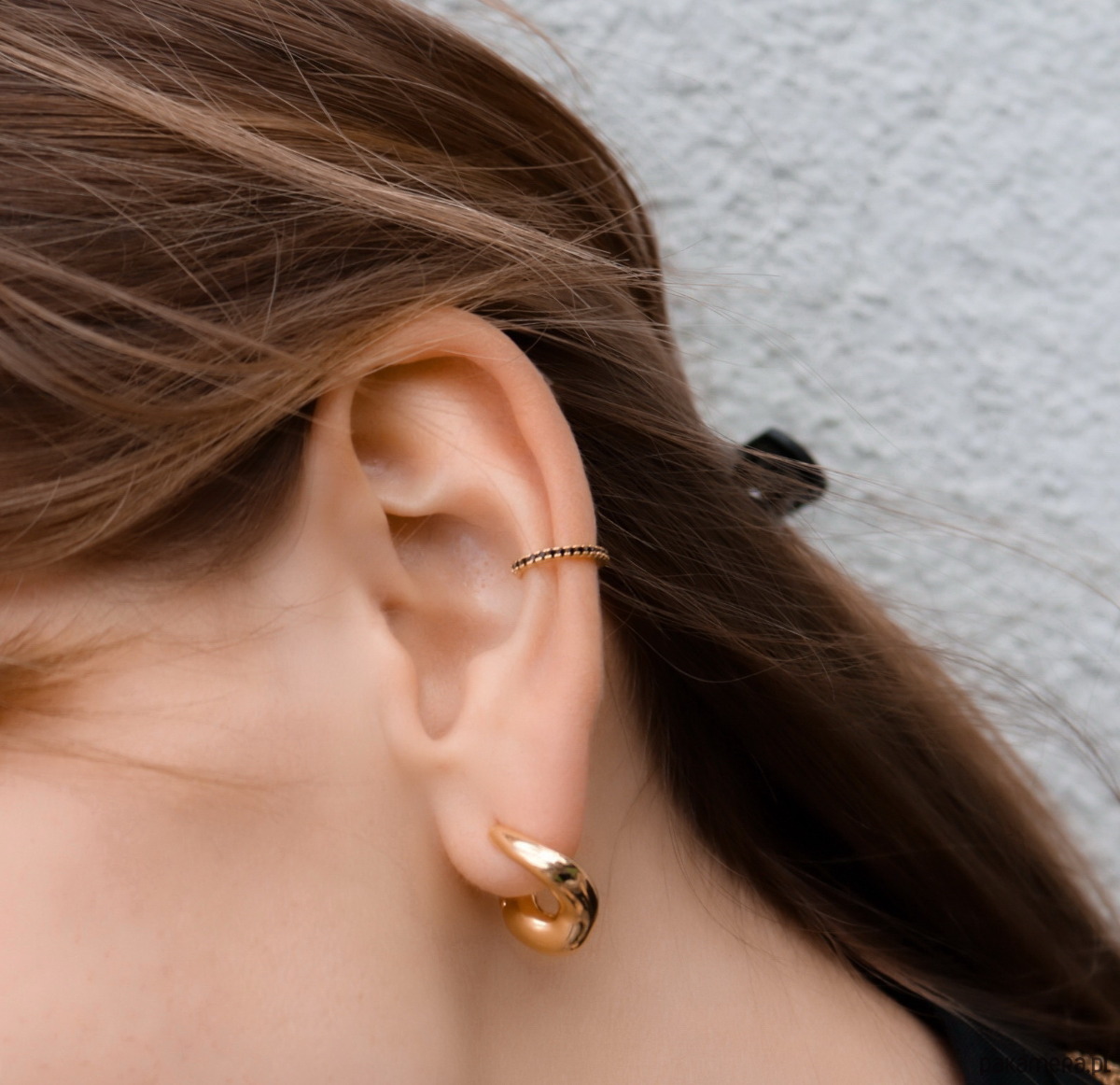 Nausznica ozdobiona czarnymi cyrkoniami ze srebra 925 pozłacanego: