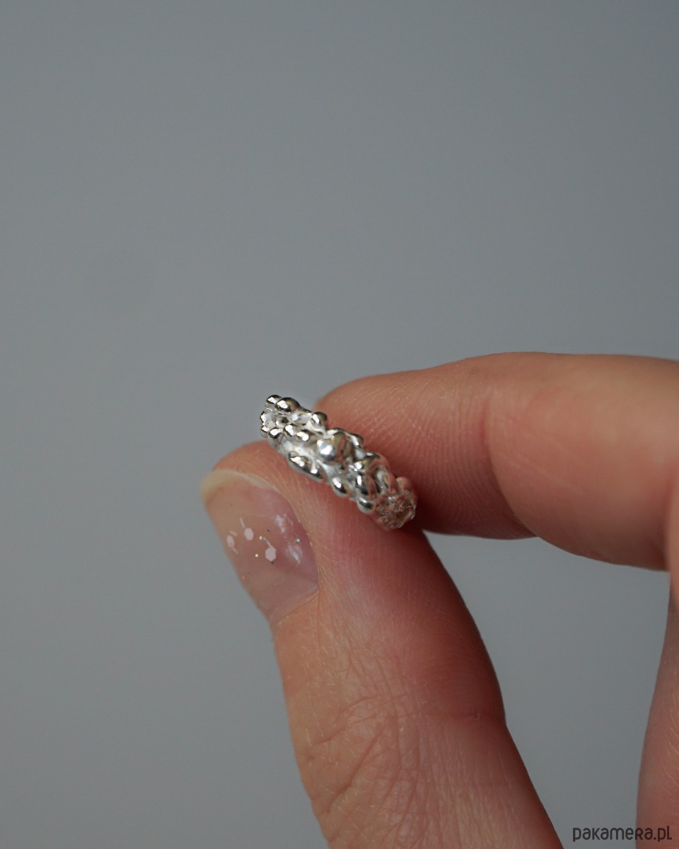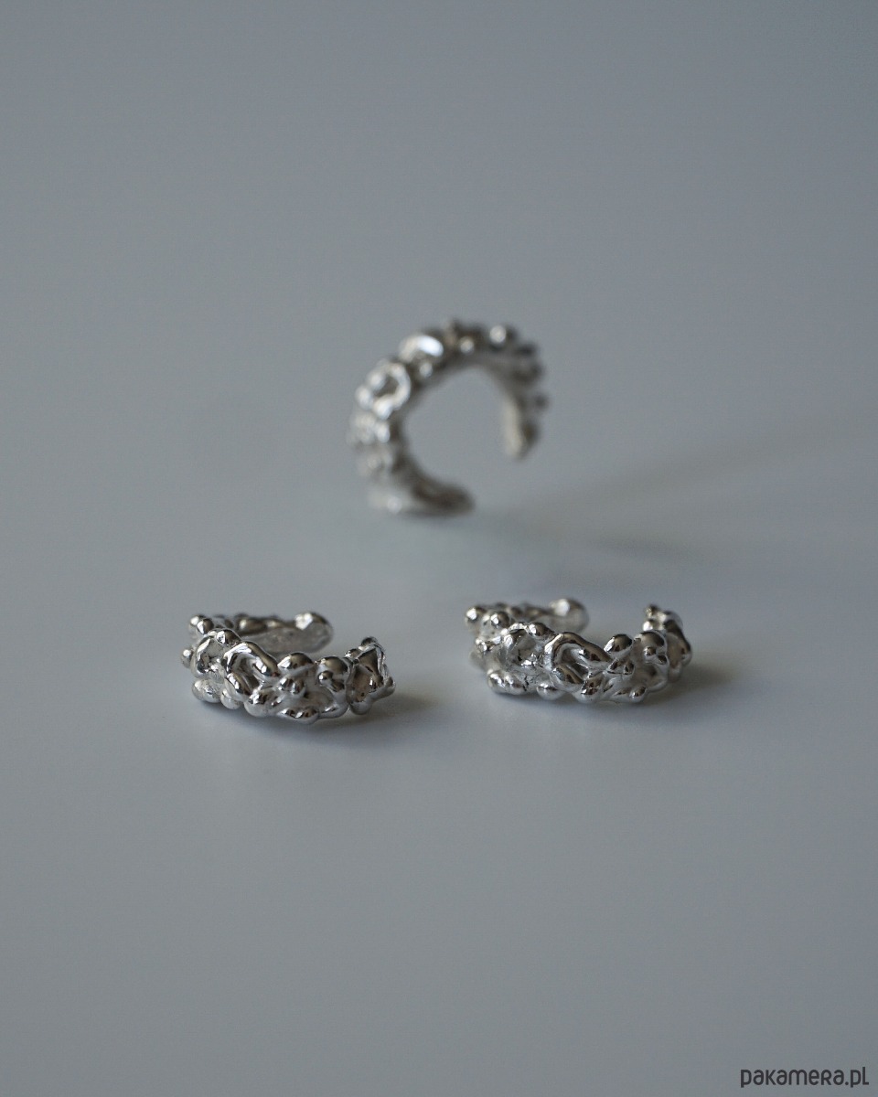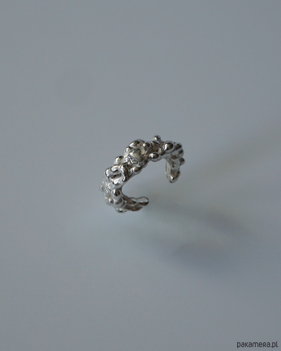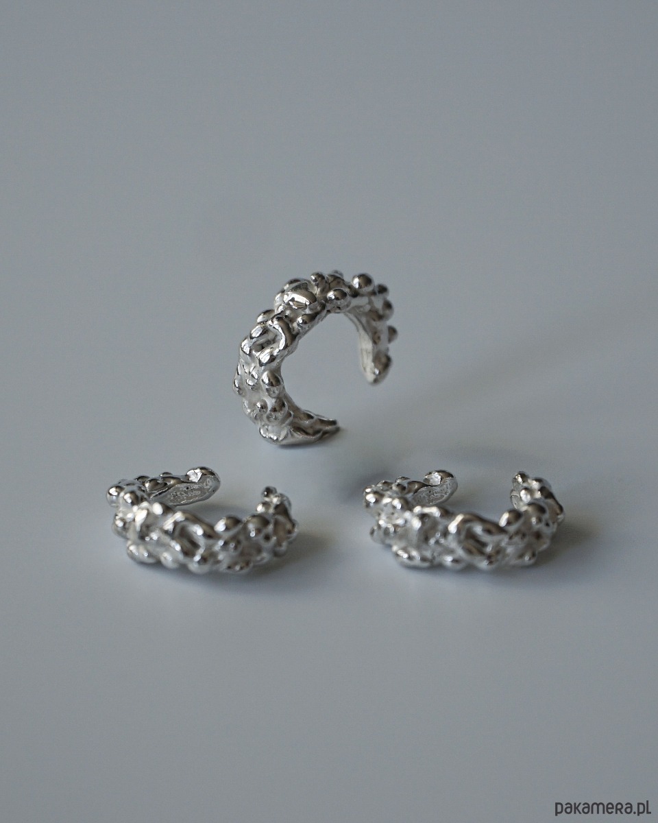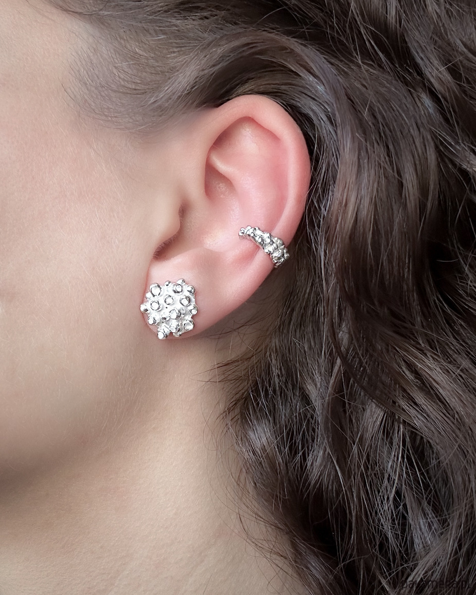 Nausznica z serii Grape dzięki swojemu wyjątkowemu projektowi i rozmiarowi przykuwa wzrok nie dominując całego ucha, pozwala to na swobodne łączenie jej z inną biżuterią jak i osobno.