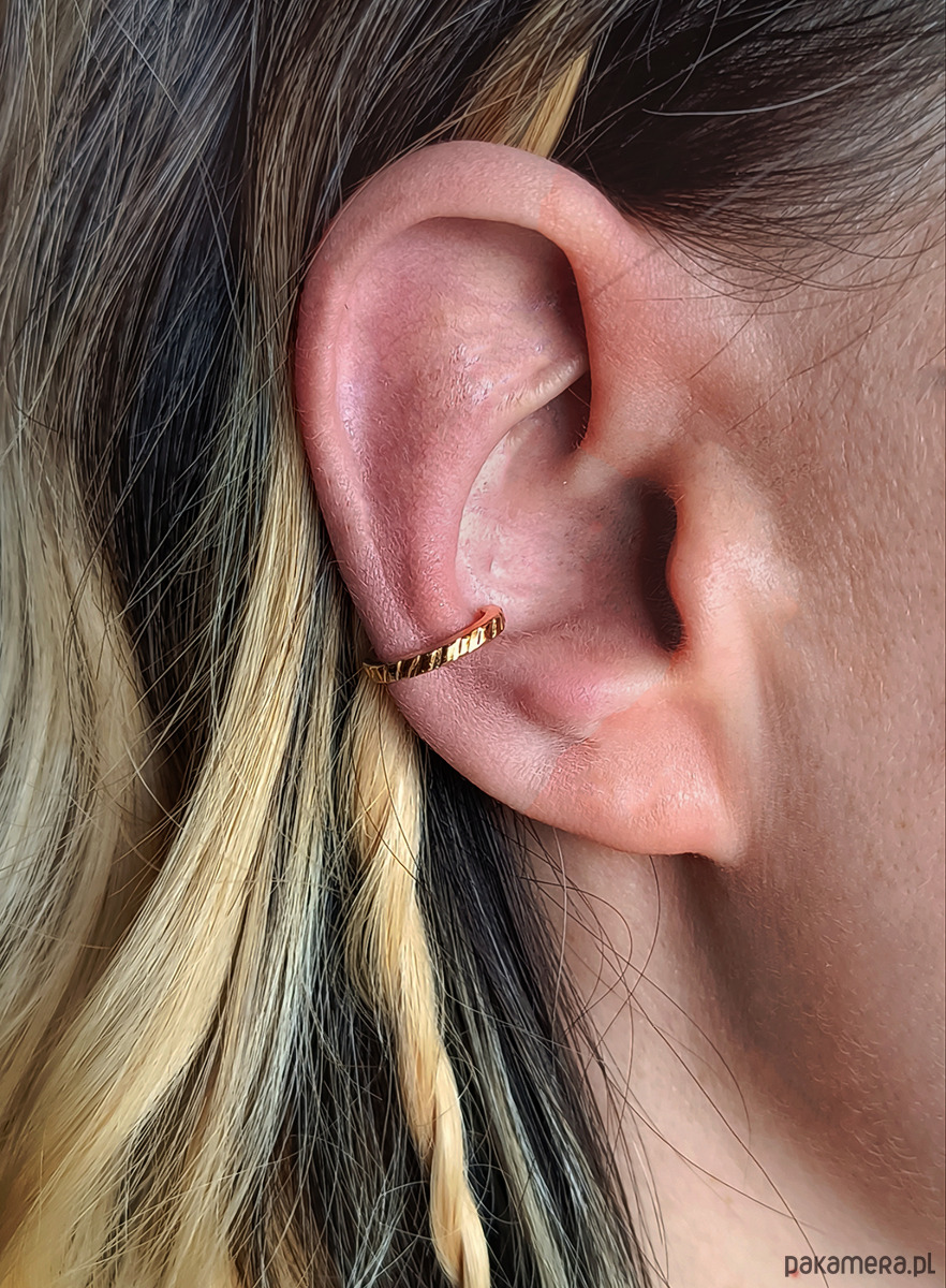 Nausznica jest bardzo wygodną ozdobą, pasująca do wielu stylizacji. Ciekawie wygląda także w zestawieniu z kolczykami.
