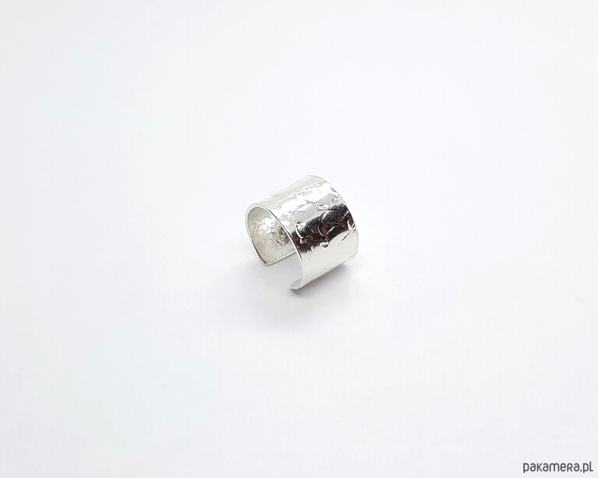 Nausznicę wykonałam własnoręcznie ze srebra próby 925. Powierzchnia jest ozdobiona fakturą, dzięki czemu pięknie załamuje światło.