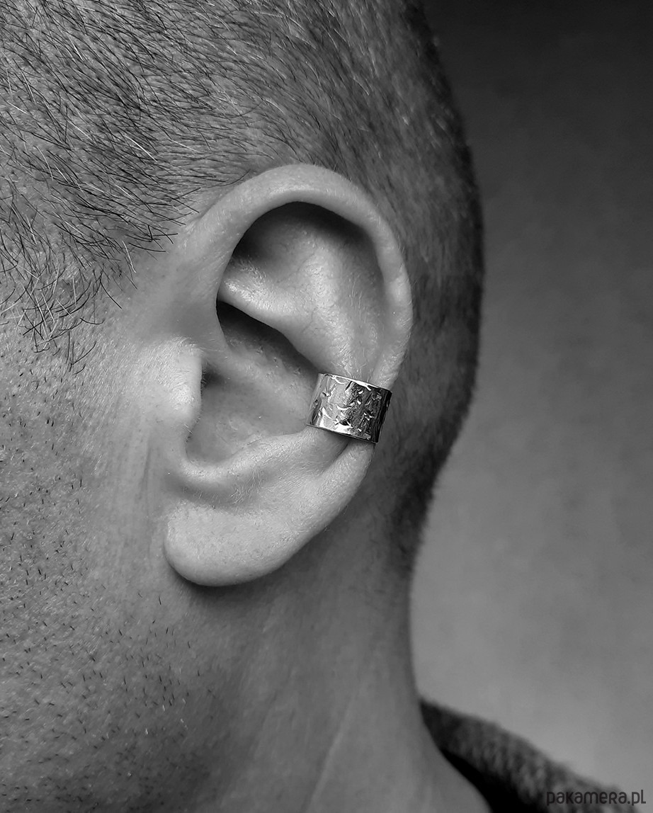 Nausznica jest świetną biżuterią zarówno dla kobiet, jak i dla mężczyzn. Ten model jest większy i szerszy, dzięki czemu z powodzeniem zmieści się na większości męskich uszu.