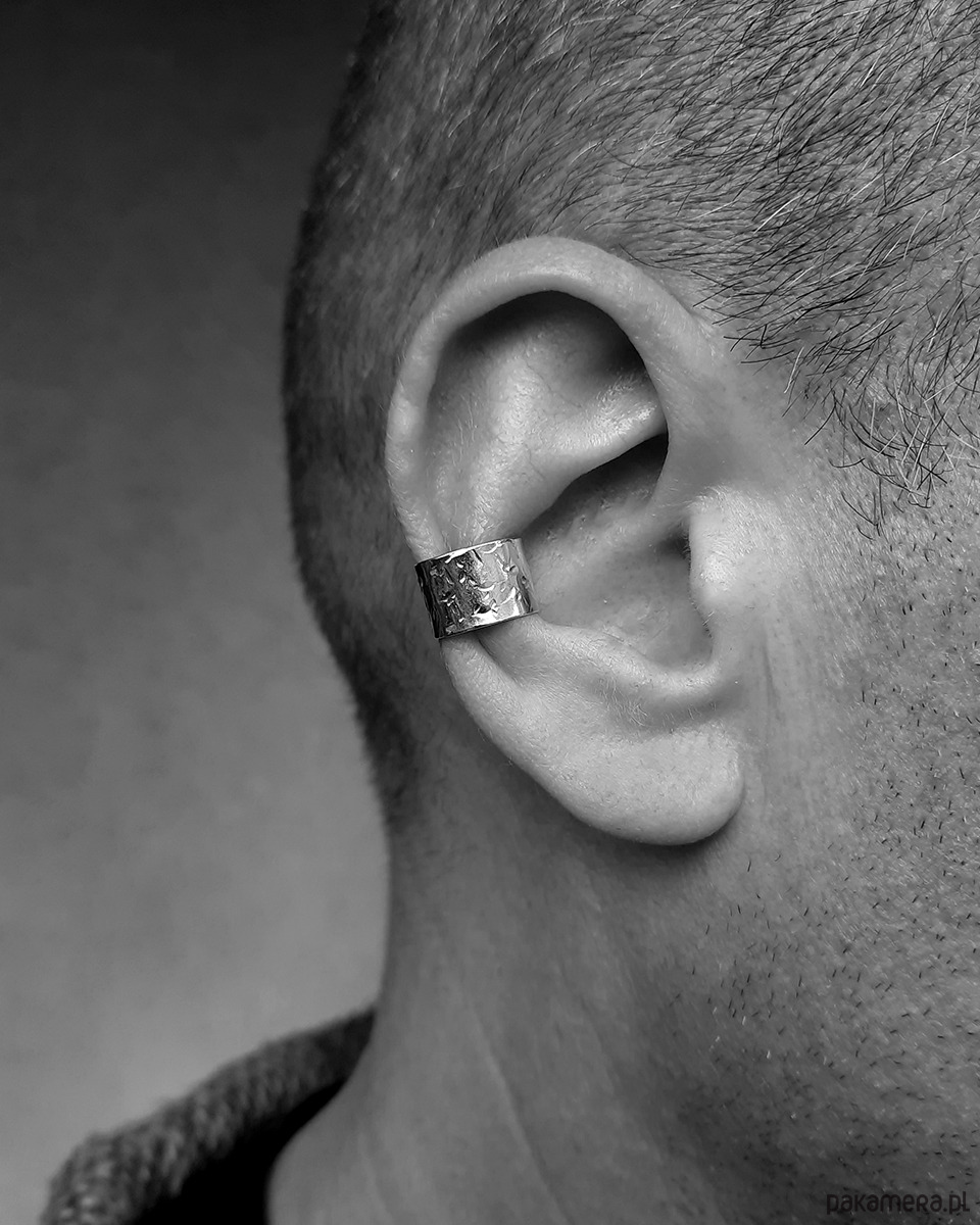 Nausznica jest świetną biżuterią zarówno dla kobiet, jak i dla mężczyzn. Ten model jest większy i szerszy, dzięki czemu z powodzeniem zmieści się na większości męskich uszu.