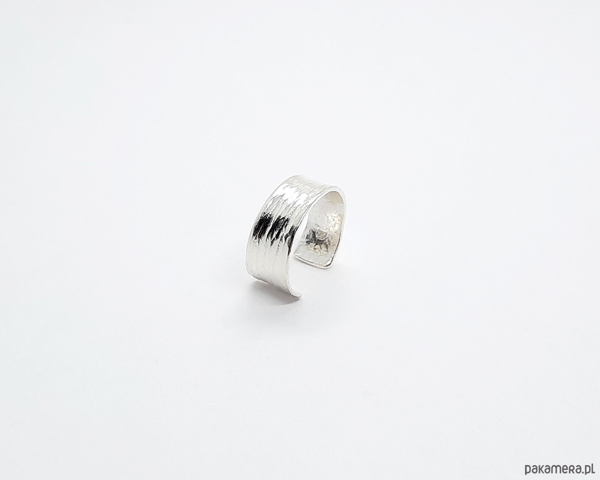 Nausznicę wykonałam własnoręcznie ze srebra próby 925. Powierzchnia jest ozdobiona fakturą, dzięki czemu pięknie załamuje światło.