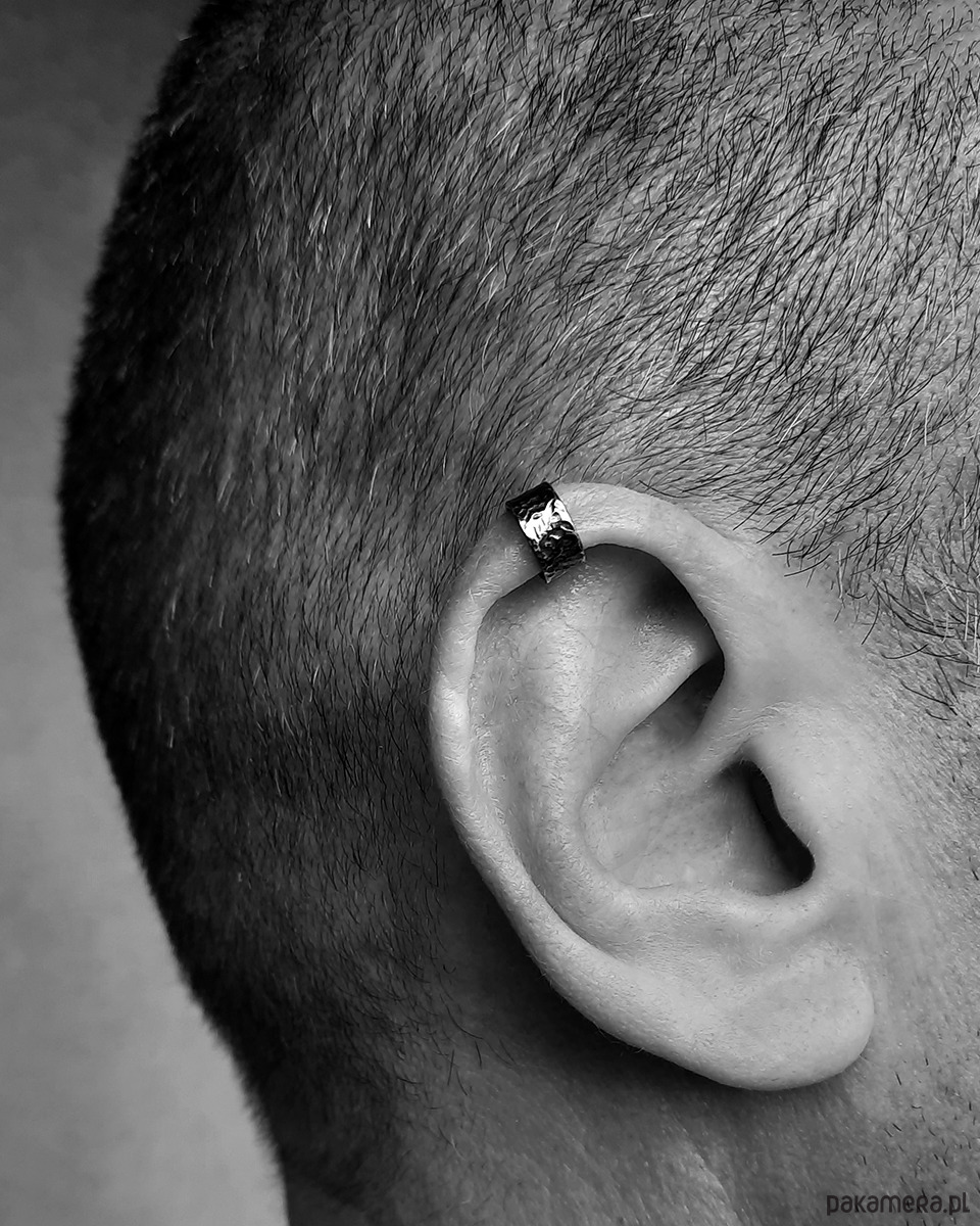 Nausznica jest świetną biżuterią zarówno dla kobiet, jak i dla mężczyzn. Ten model jest większy i szerszy, dzięki czemu z powodzeniem zmieści się na większości męskich uszu.