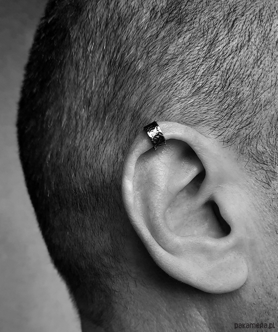 Nausznica jest świetną biżuterią zarówno dla kobiet, jak i dla mężczyzn. Ten model jest większy i szerszy, dzięki czemu z powodzeniem zmieści się na większości męskich uszu.