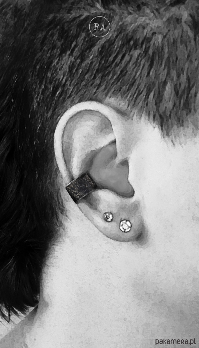 Nausznica na środek ucha - szerokość ok. 9 mm. Oksydowane srebro.