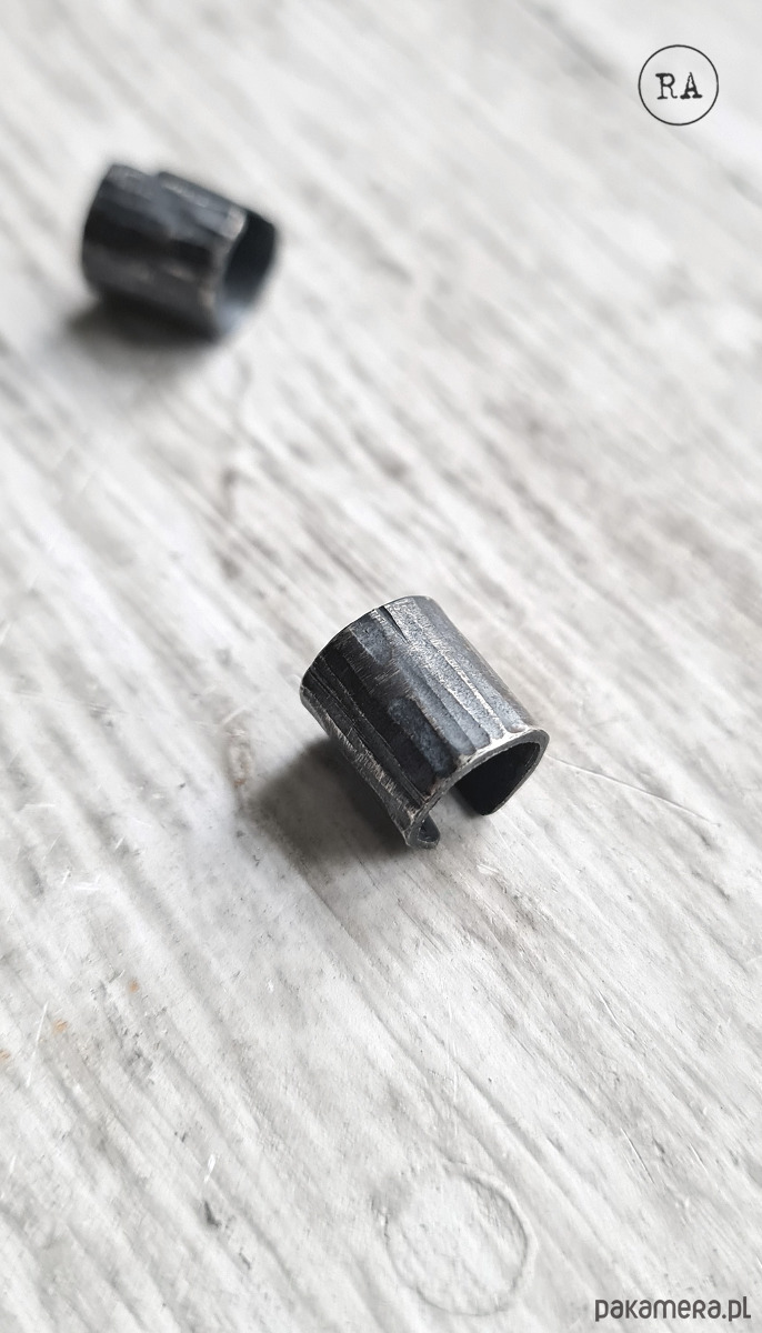 Nausznica na szczyt ucha - szerokość ok. 10 mm. Oksydowane srebro.