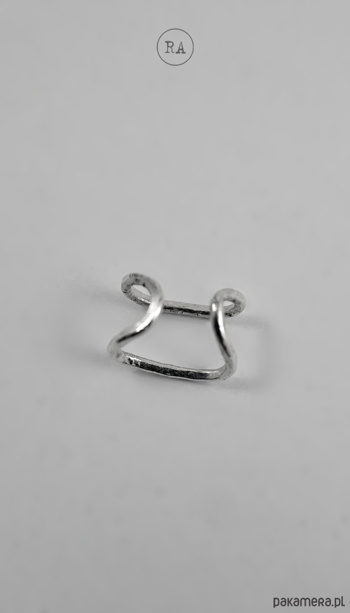 Nausznica na środek ucha - szerokość ok. 8 mm. Srebro, nieregularne młotkowane.