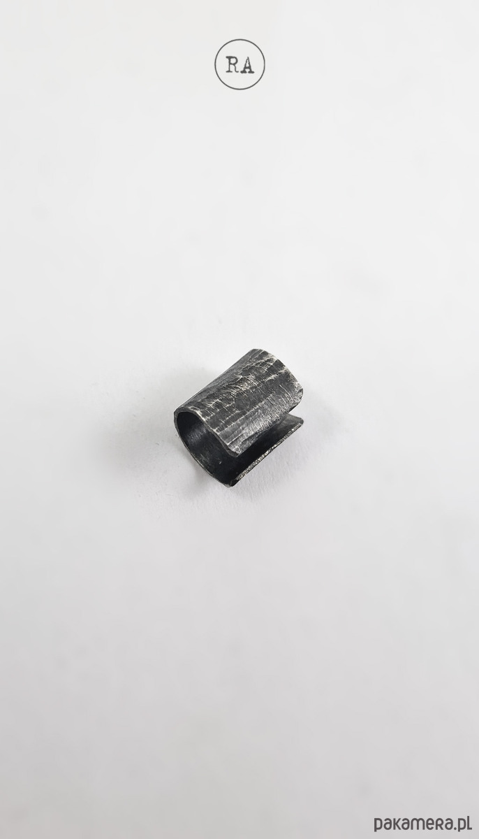 Nausznica na szczyt ucha - szerokość ok. 9 mm. Oksydowane srebro.