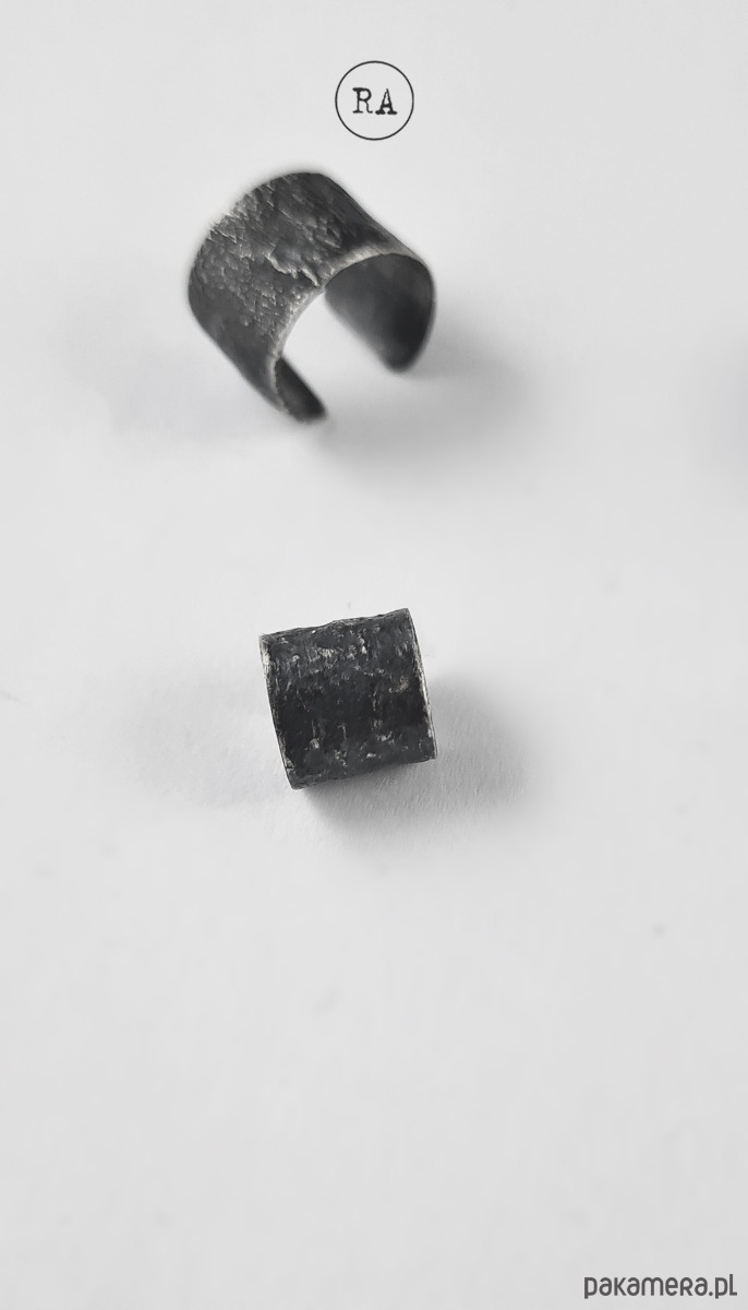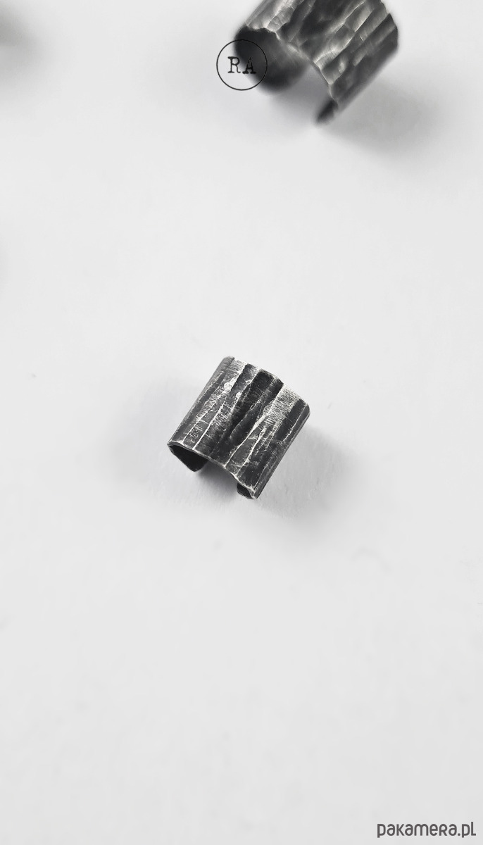 Nausznica na szczyt ucha - szerokość ok. 9 mm. Oksydowane srebro.