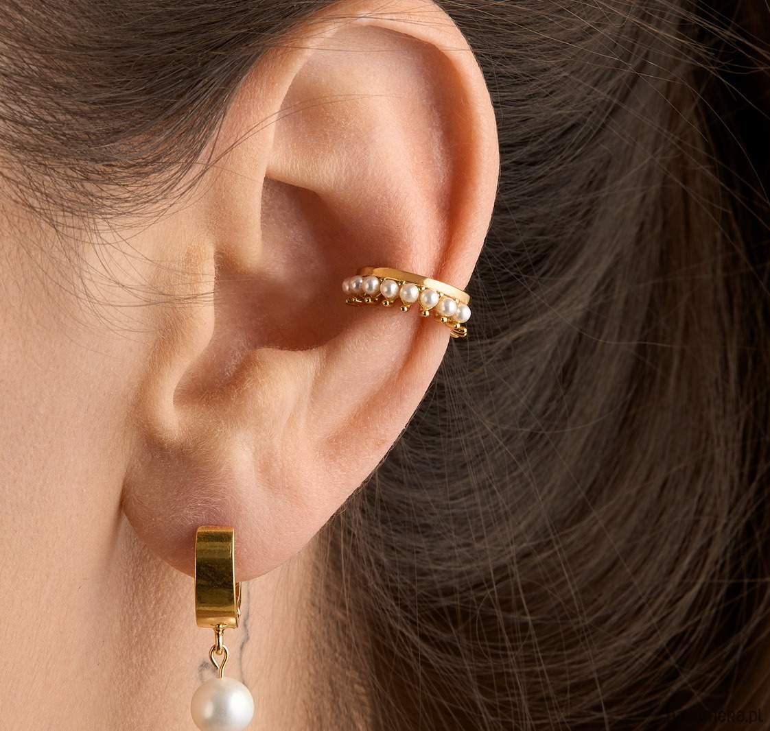 Nausznica ozdobiona perłami ze srebra 925 pozłacanego: